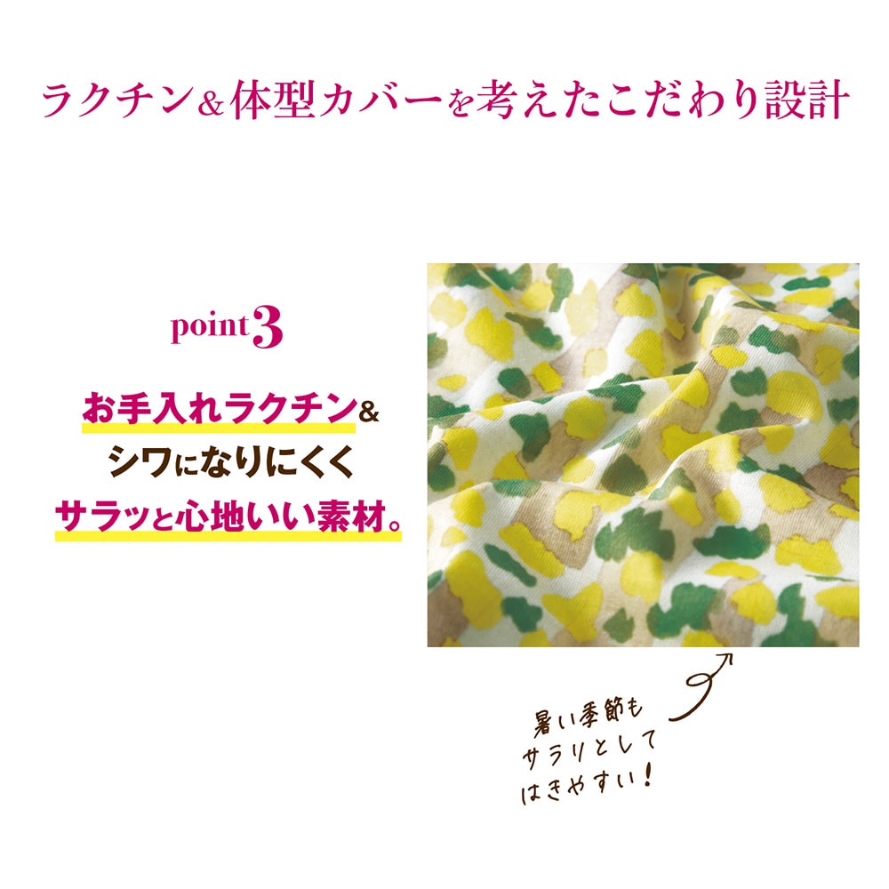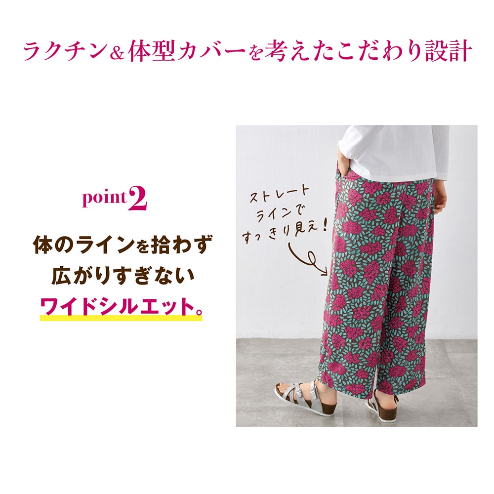 暑い季節もサラリとしてはきやすく、体型カバーも考えたこだわり設計だから、柄パンツ初心者さんにもおすすめです。