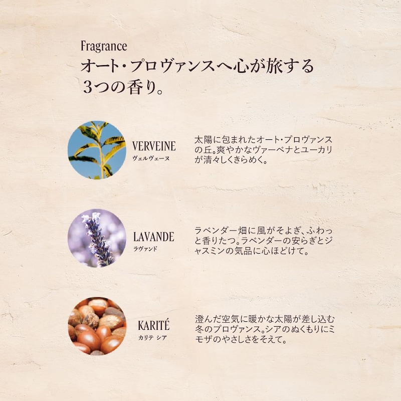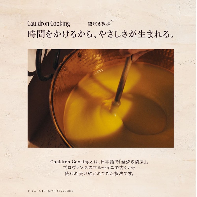伝統的な釜焚き製法を採用。南仏の陽光をまとったやすらぎのラベンダーの香りと、やさしい使い心地。