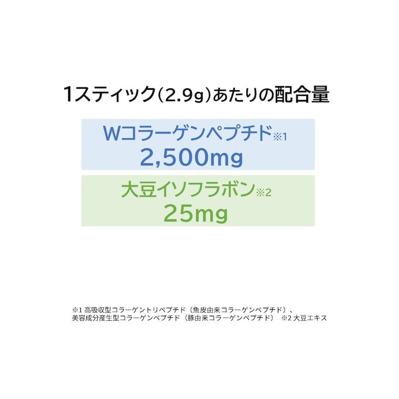 ※1 高吸収型コラーゲントリペプチド(魚皮由来コラーゲンペプチド)、美容成分産生型コラーゲンペプチド(豚由来コラーゲンペプチド)