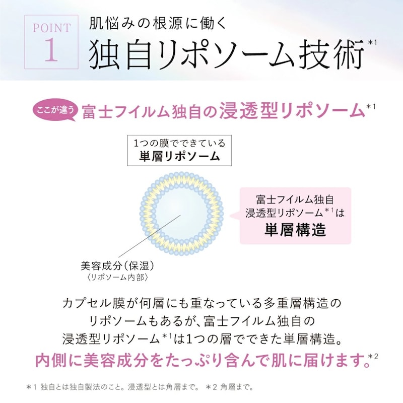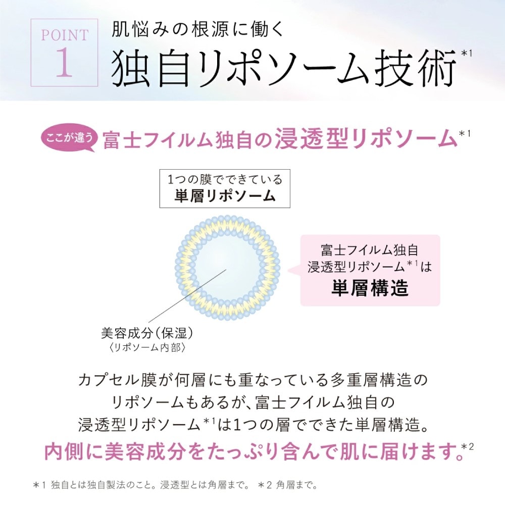 独自の浸透型リポソーム*3が、美容成分を放出し、肌に素早くなじみます。