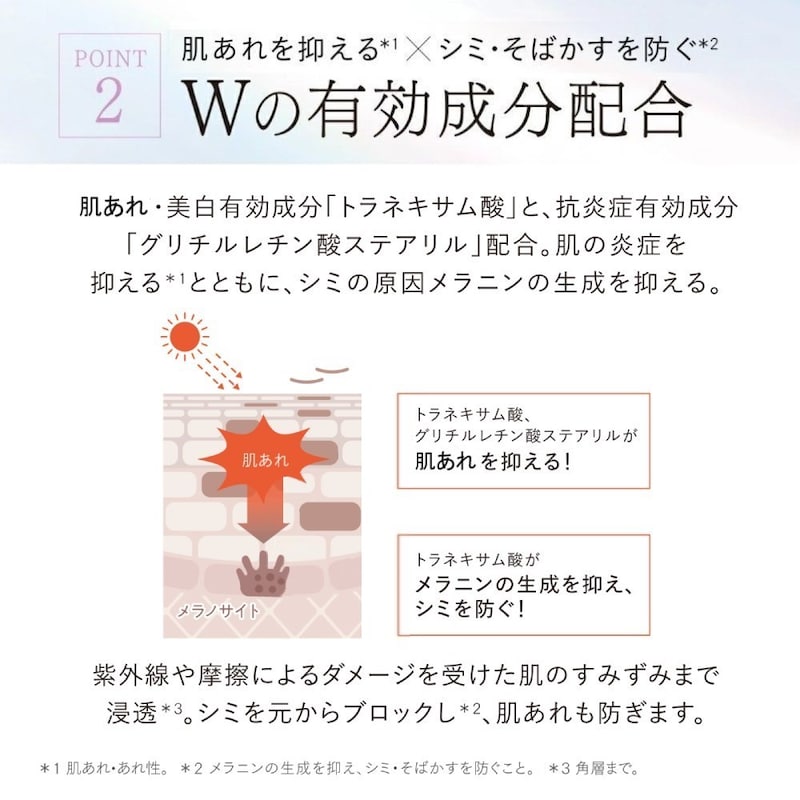 *1 シミの元とはメラニンのこと。メラニンの生成を抑え、シミ・そばかすを防ぐ。