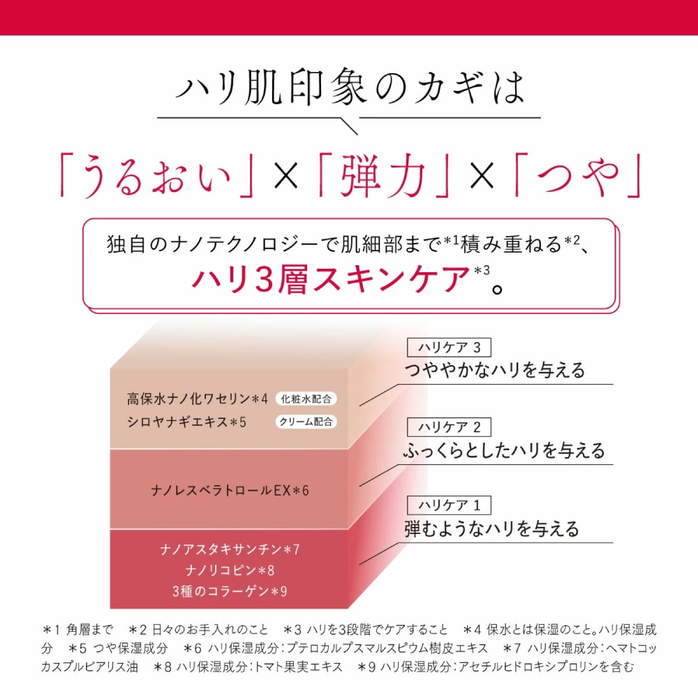 *4 ハリ保湿成分:ワセリン、プテロカルプスマルスピウム樹皮エキス、トマト果実エキス。つや保湿成分:シロヤナギエキス。
