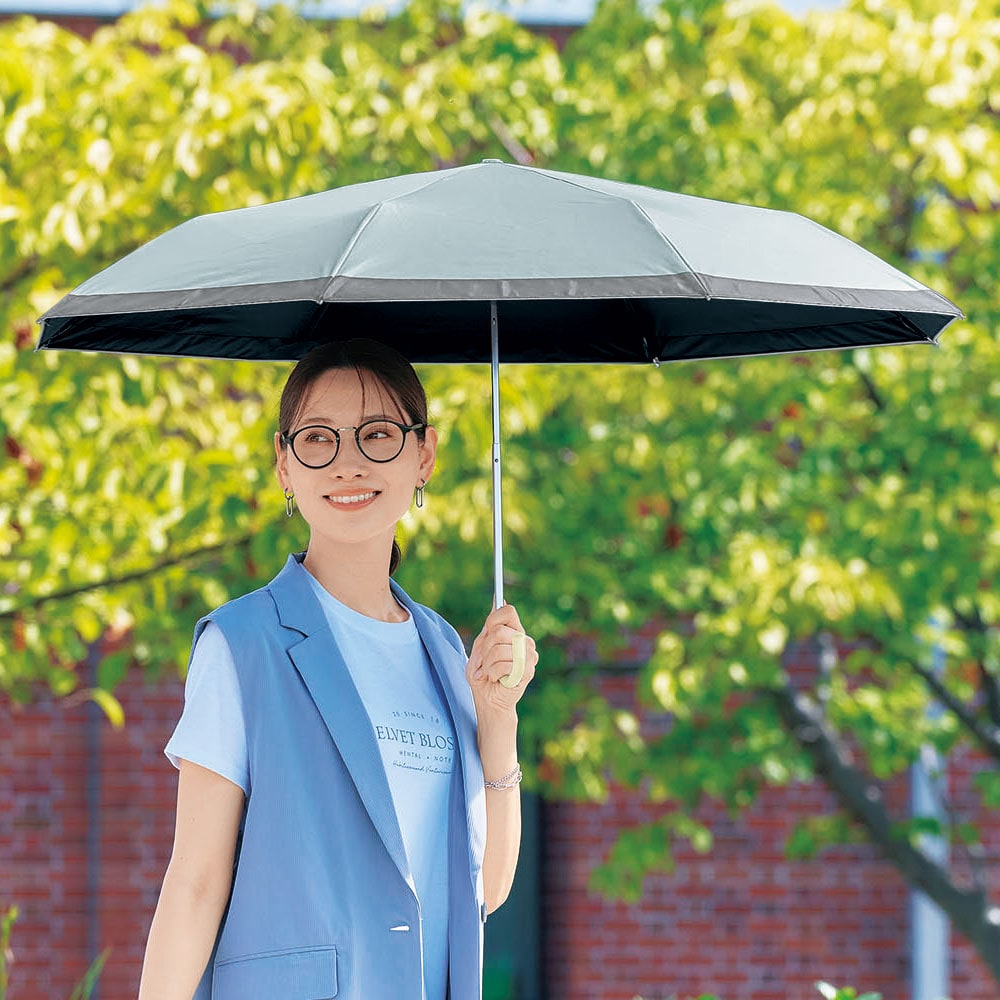 日傘の下はひんやり涼しく、まるで木陰にいるような心地よさ。炎天下でも快適にお出かけできます。