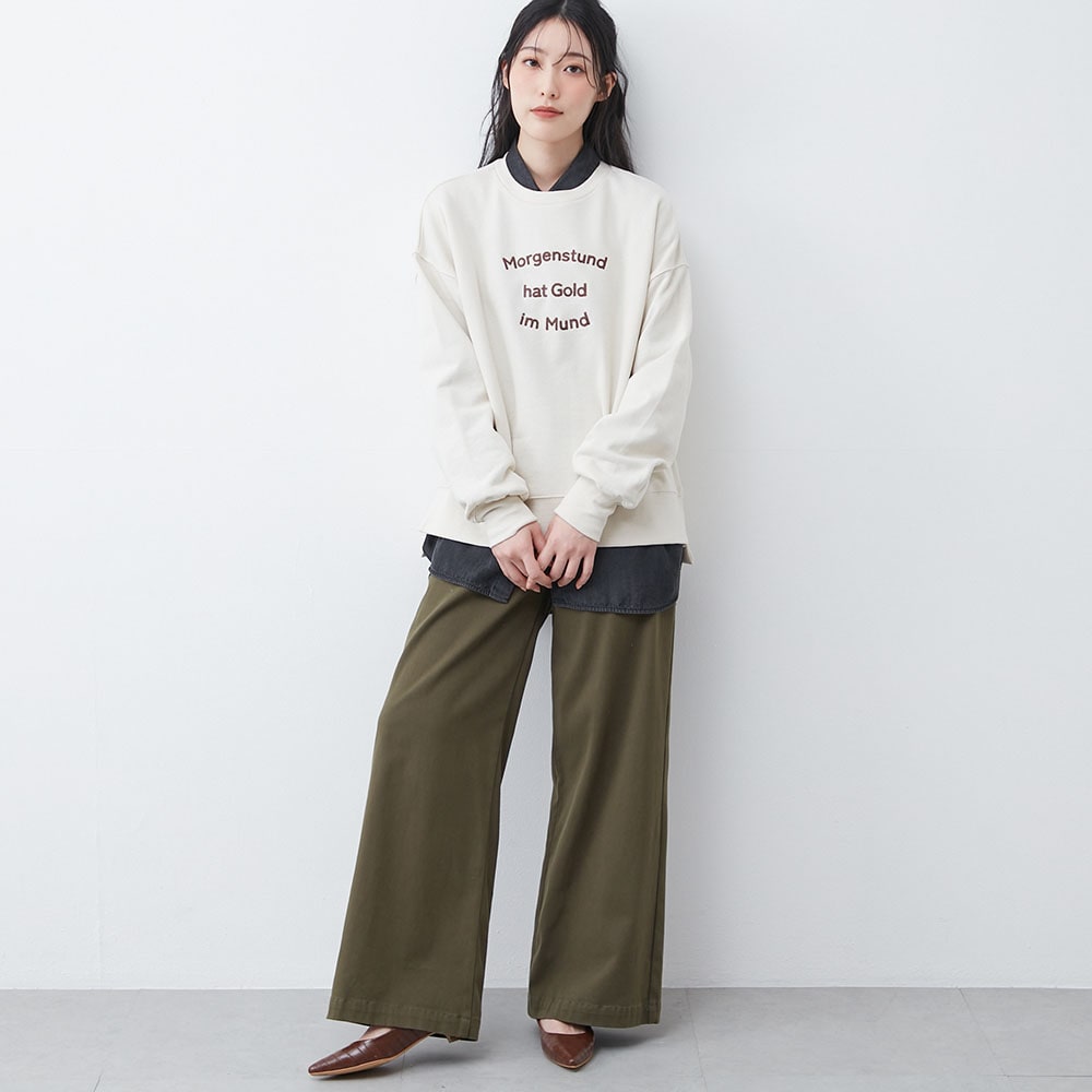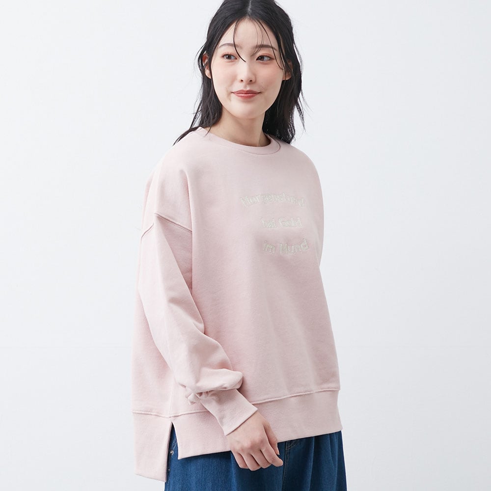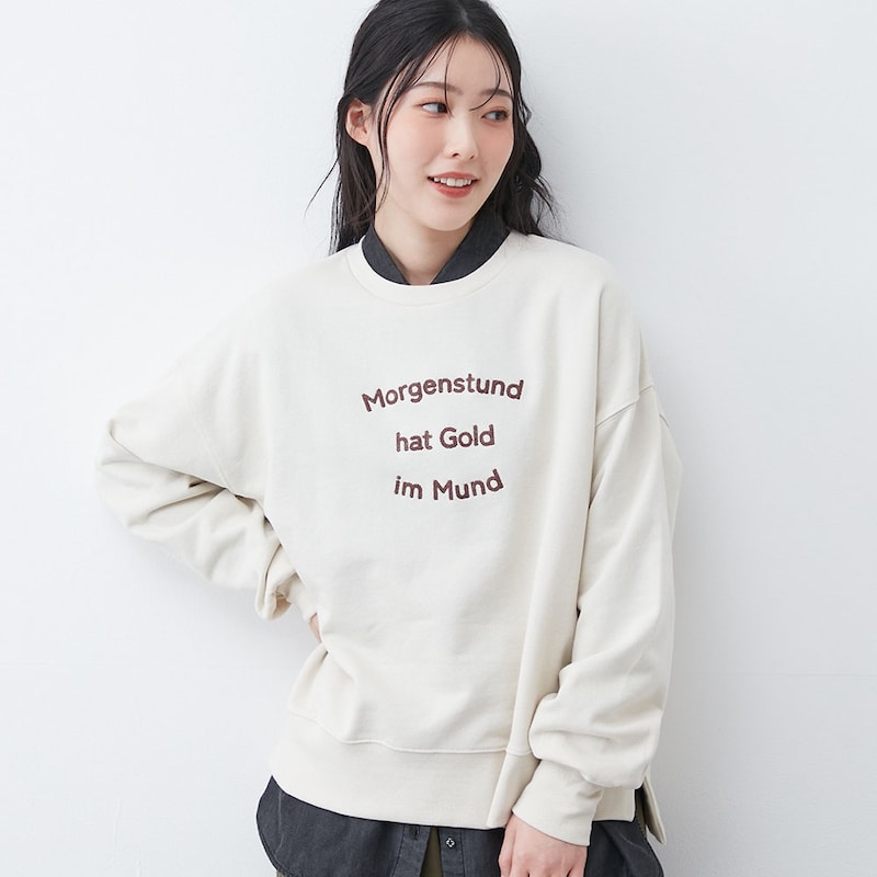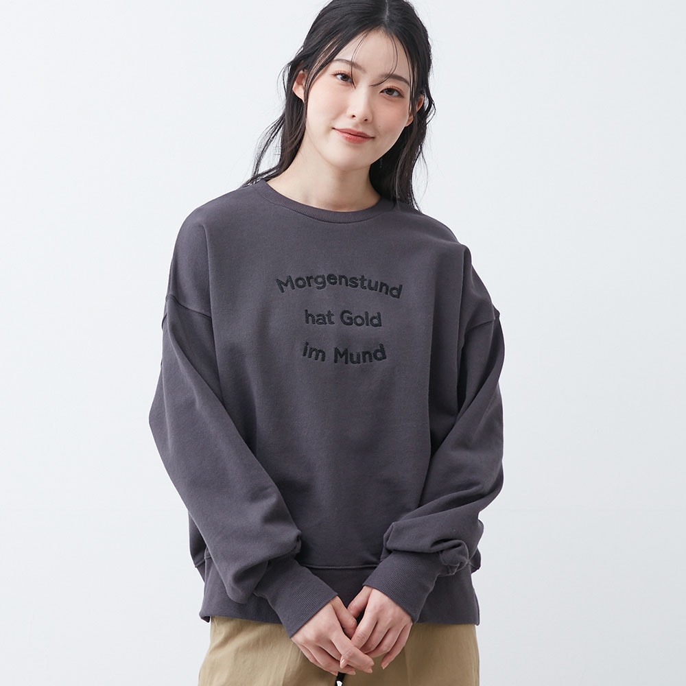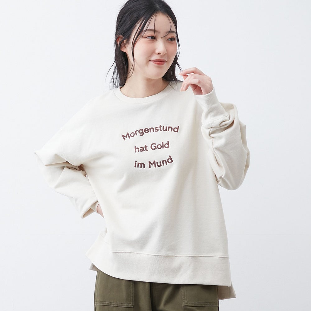 カジュアルな着こなしにマッチする、刺しゅうロゴプルオーバー
