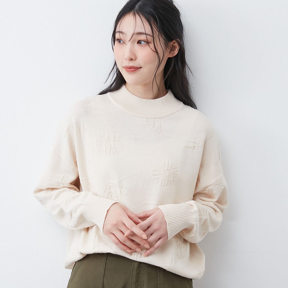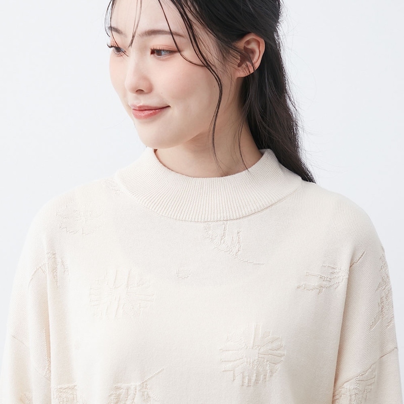 シンプルだけどさりげなくかわいい、花柄ジャカードニット