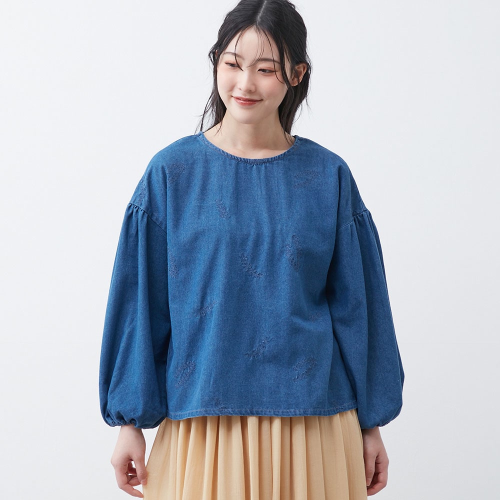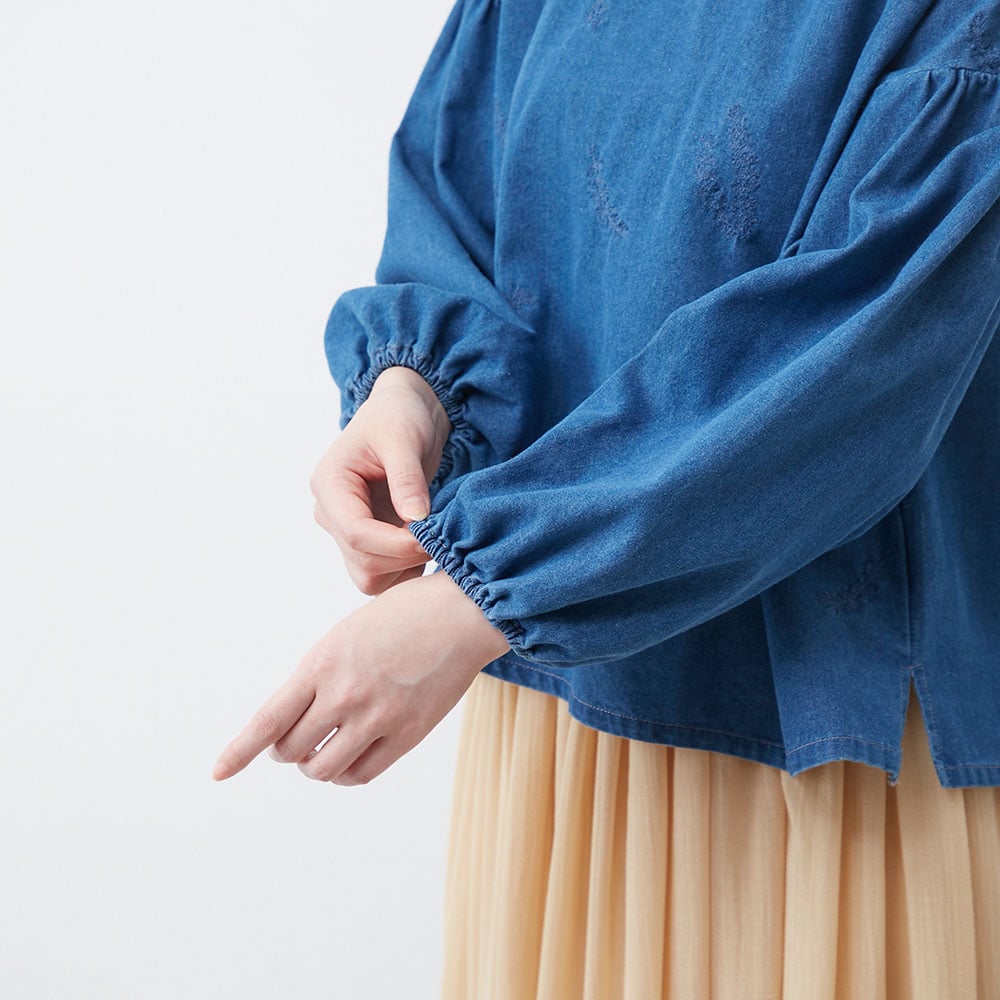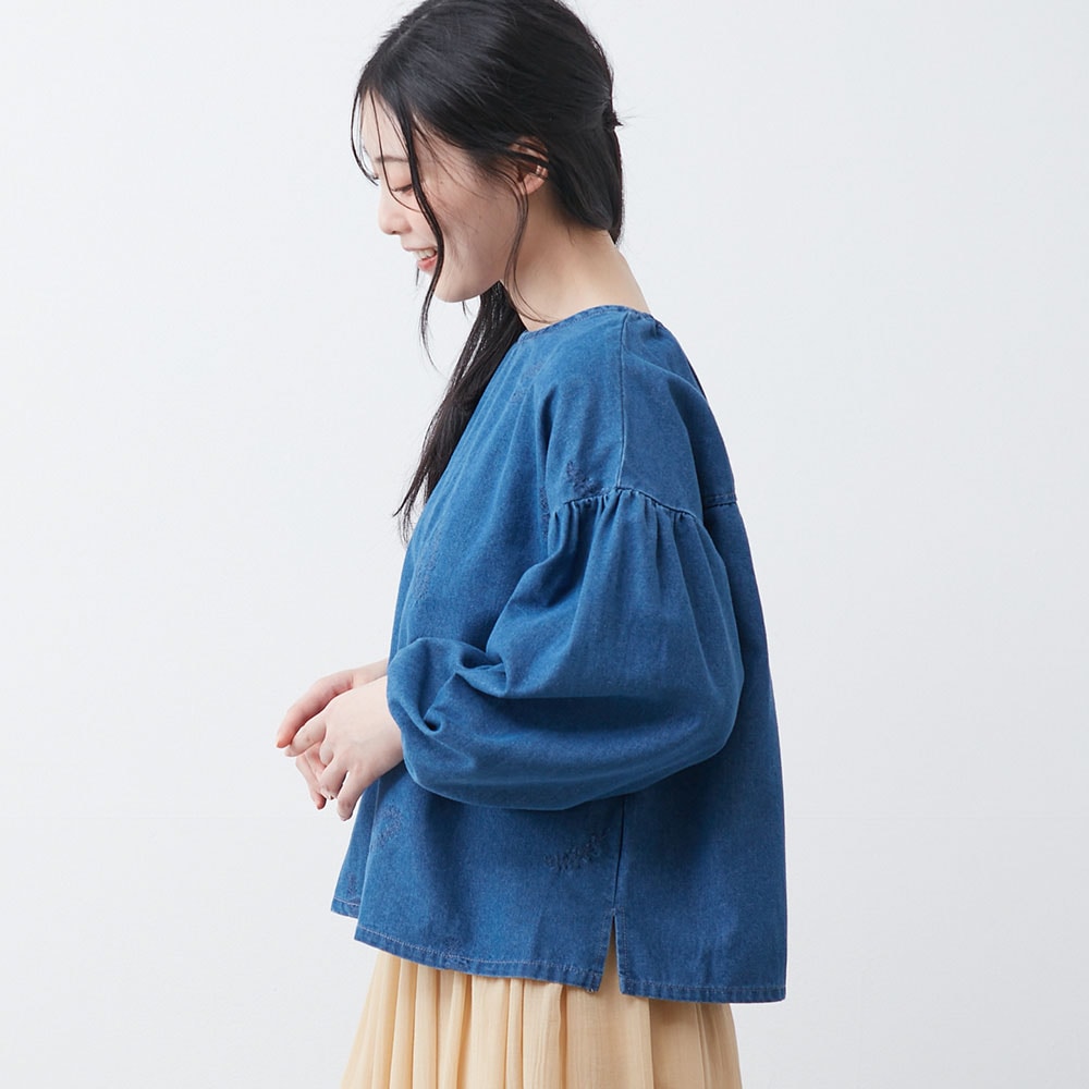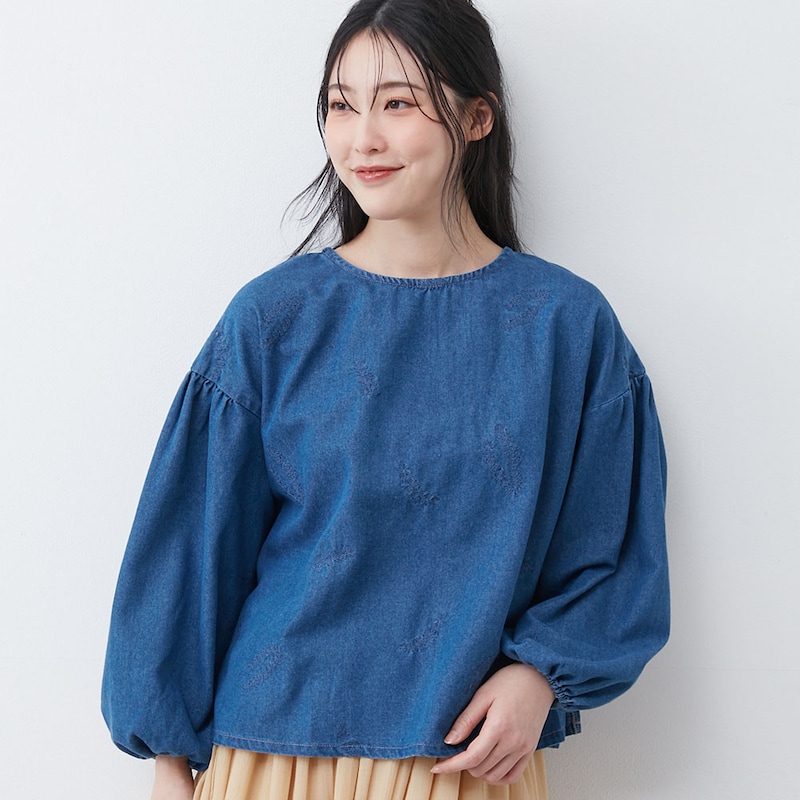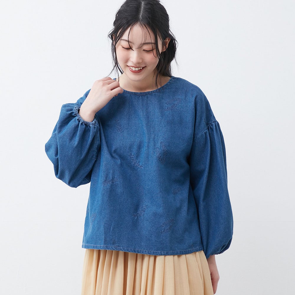 デニム刺しゅうブラウス