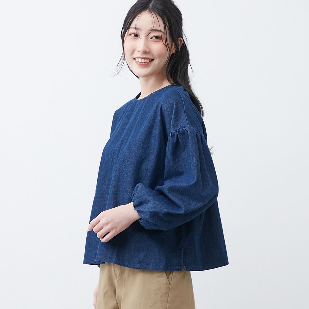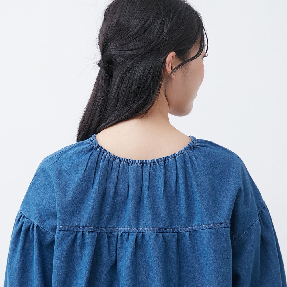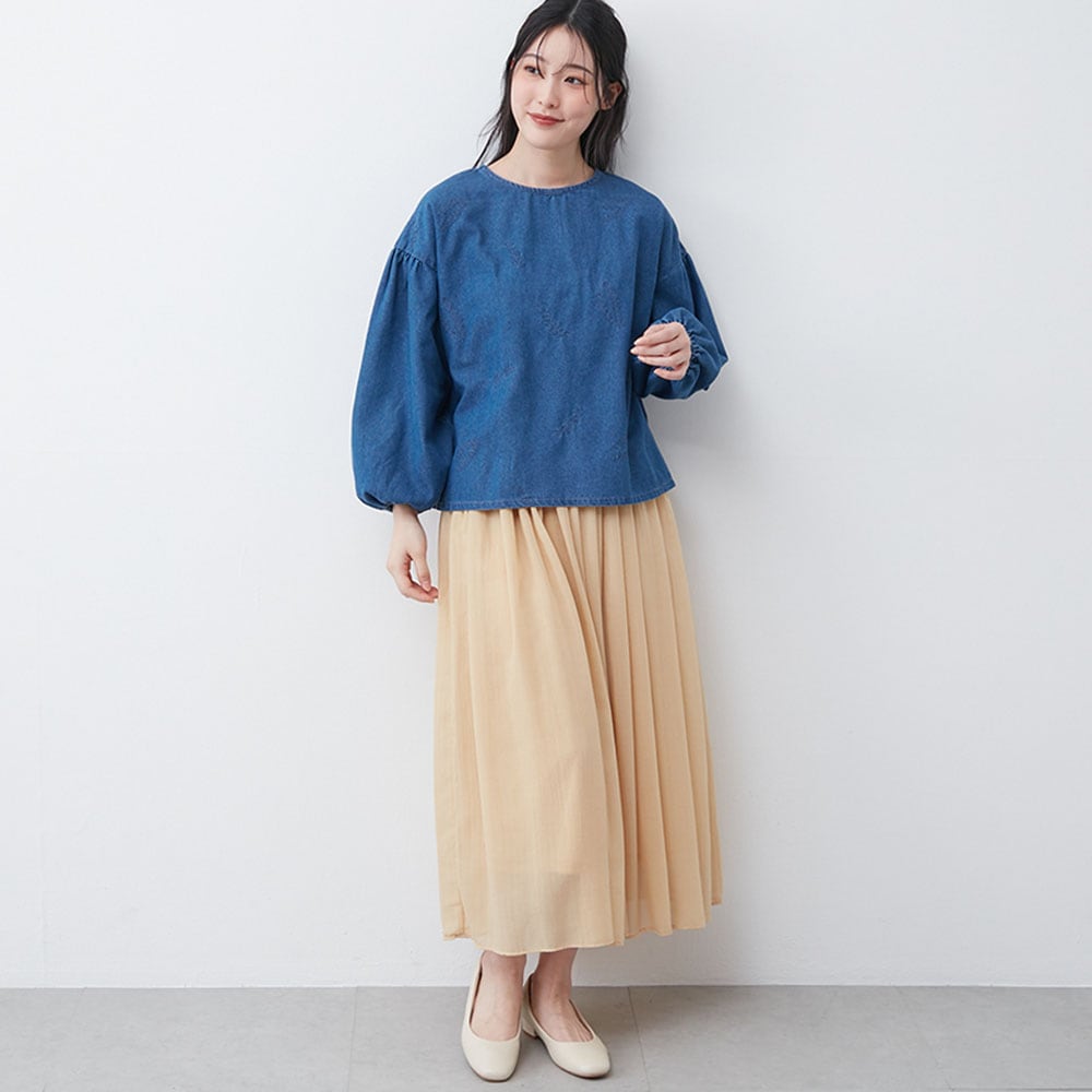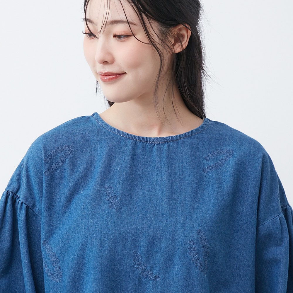デニム刺しゅうブラウス