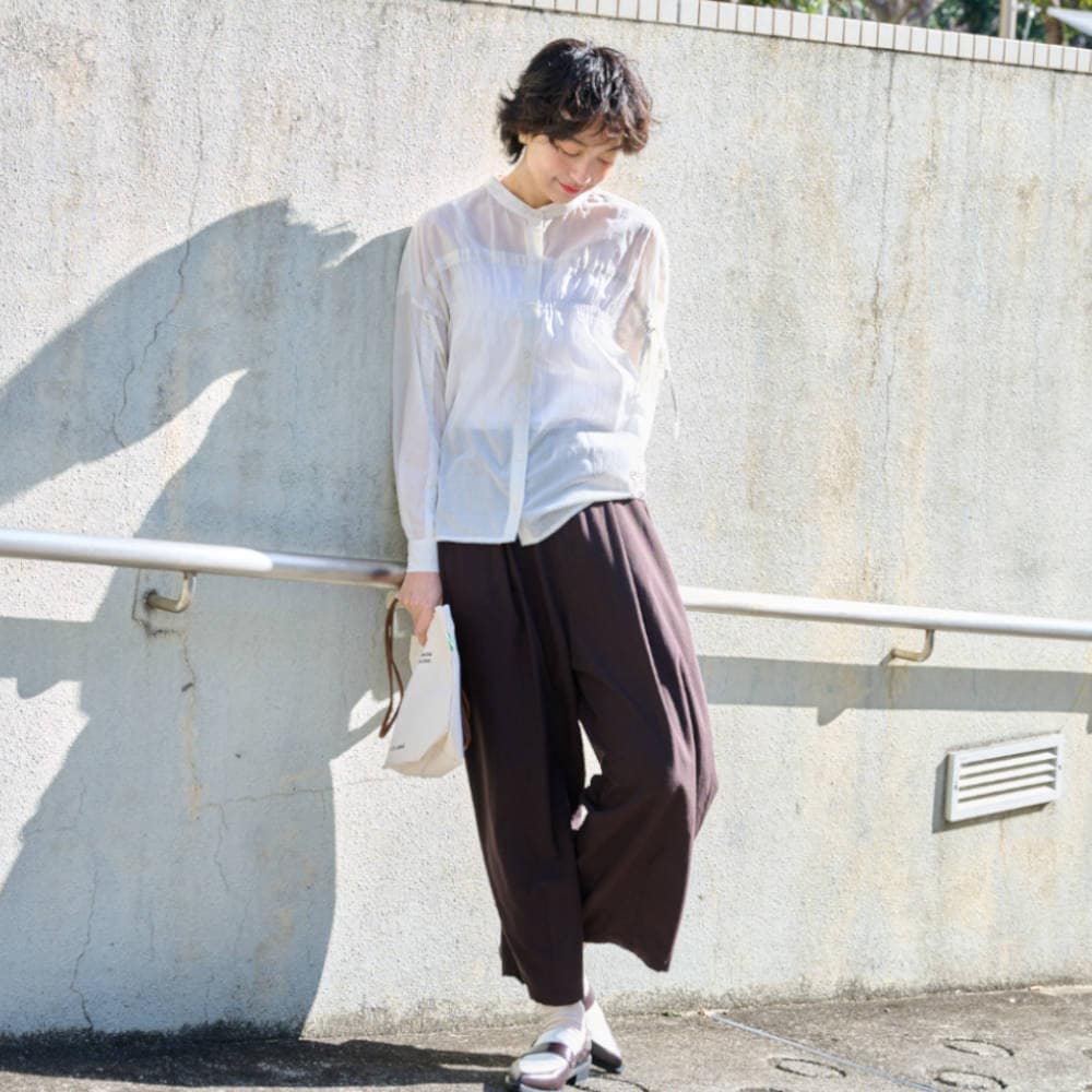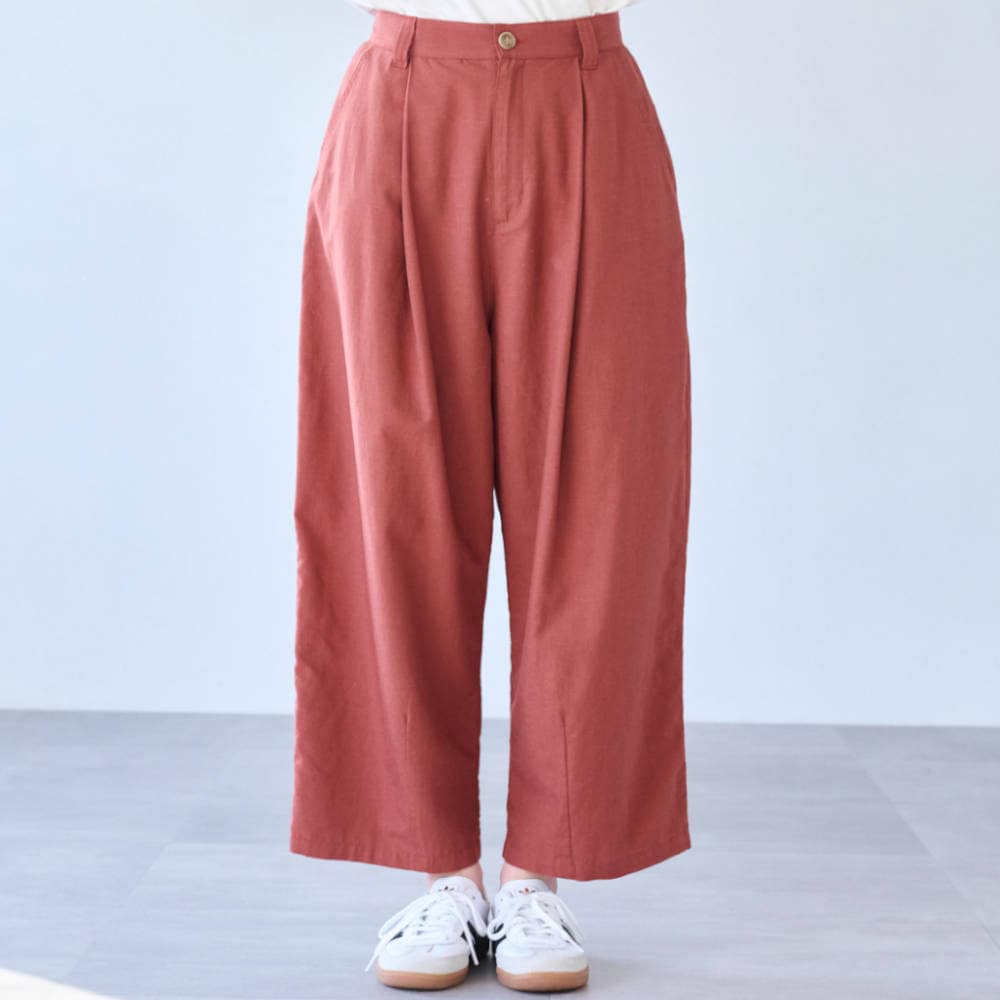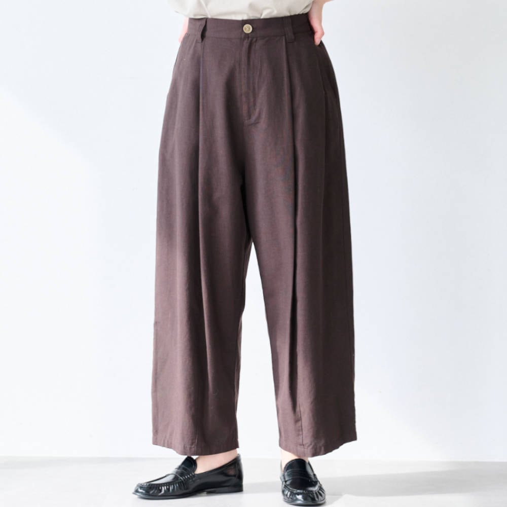形も素材もこだわったタックパンツ