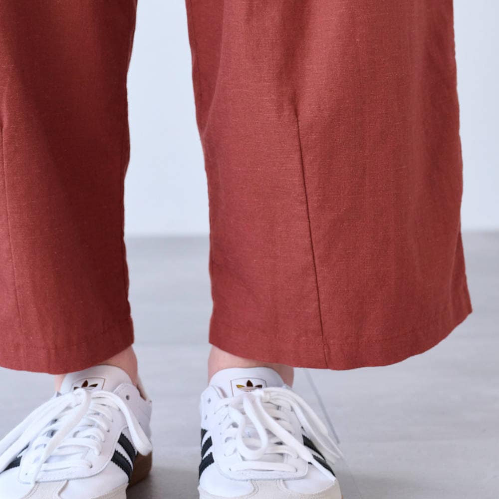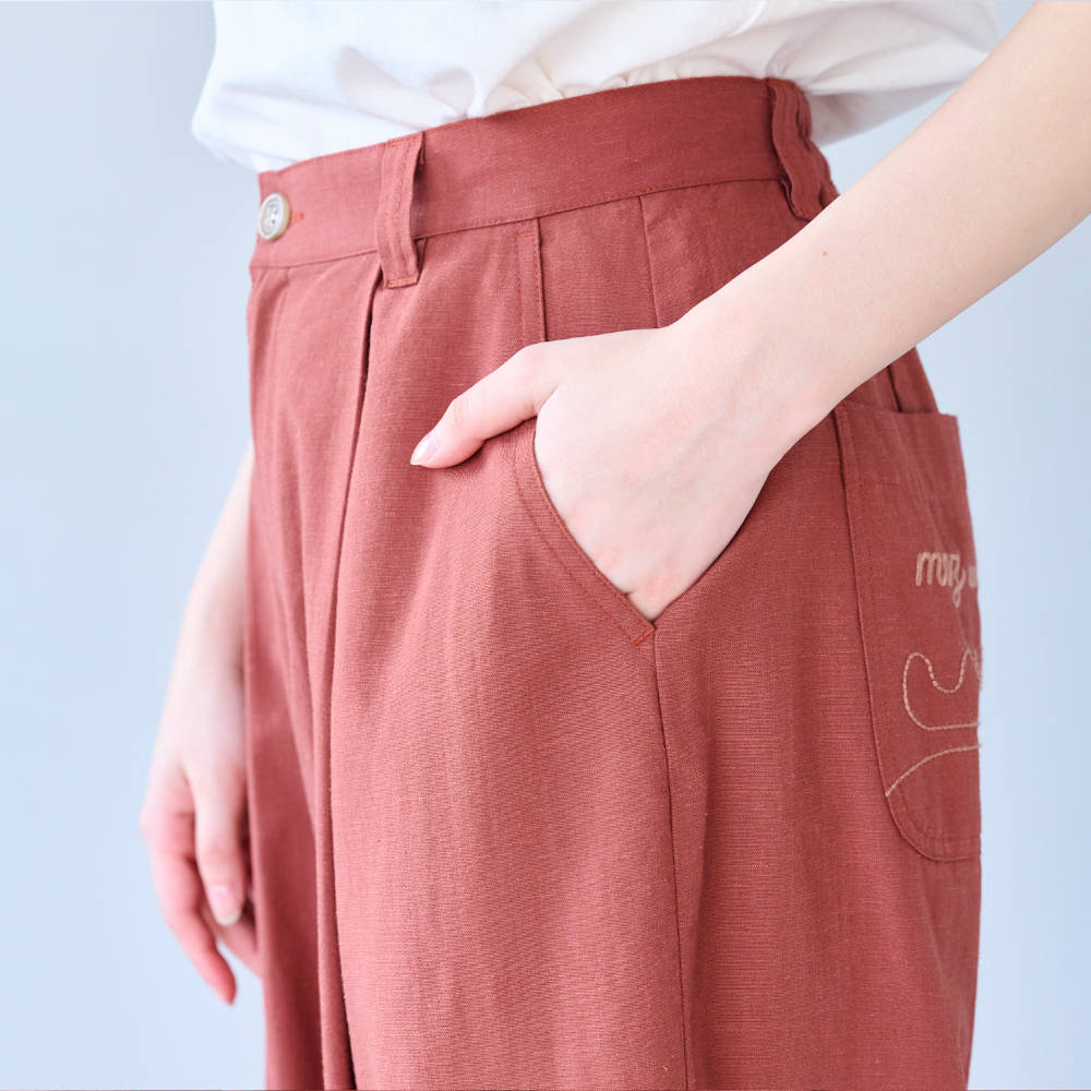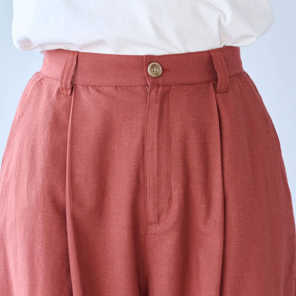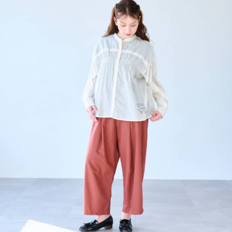 形も素材もこだわったタックパンツ