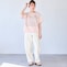 ソフトイエロー、ピンク、ブルーグレー:(本体)ポリエステル65%、綿35%(リブ部分)ポリエステル62%、綿33%、ポリウレタン5%