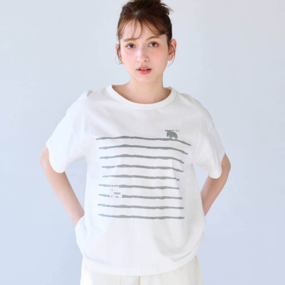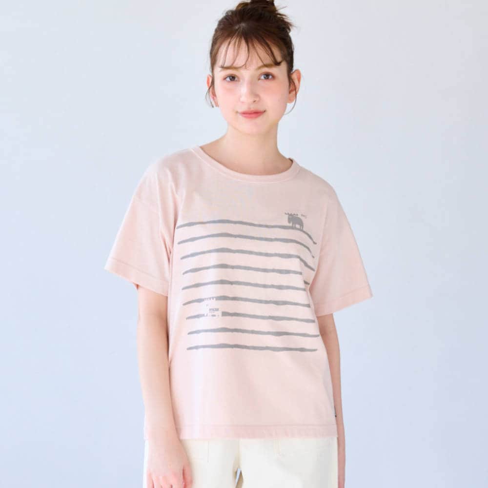 ・ボーダー風のプリントTシャツ