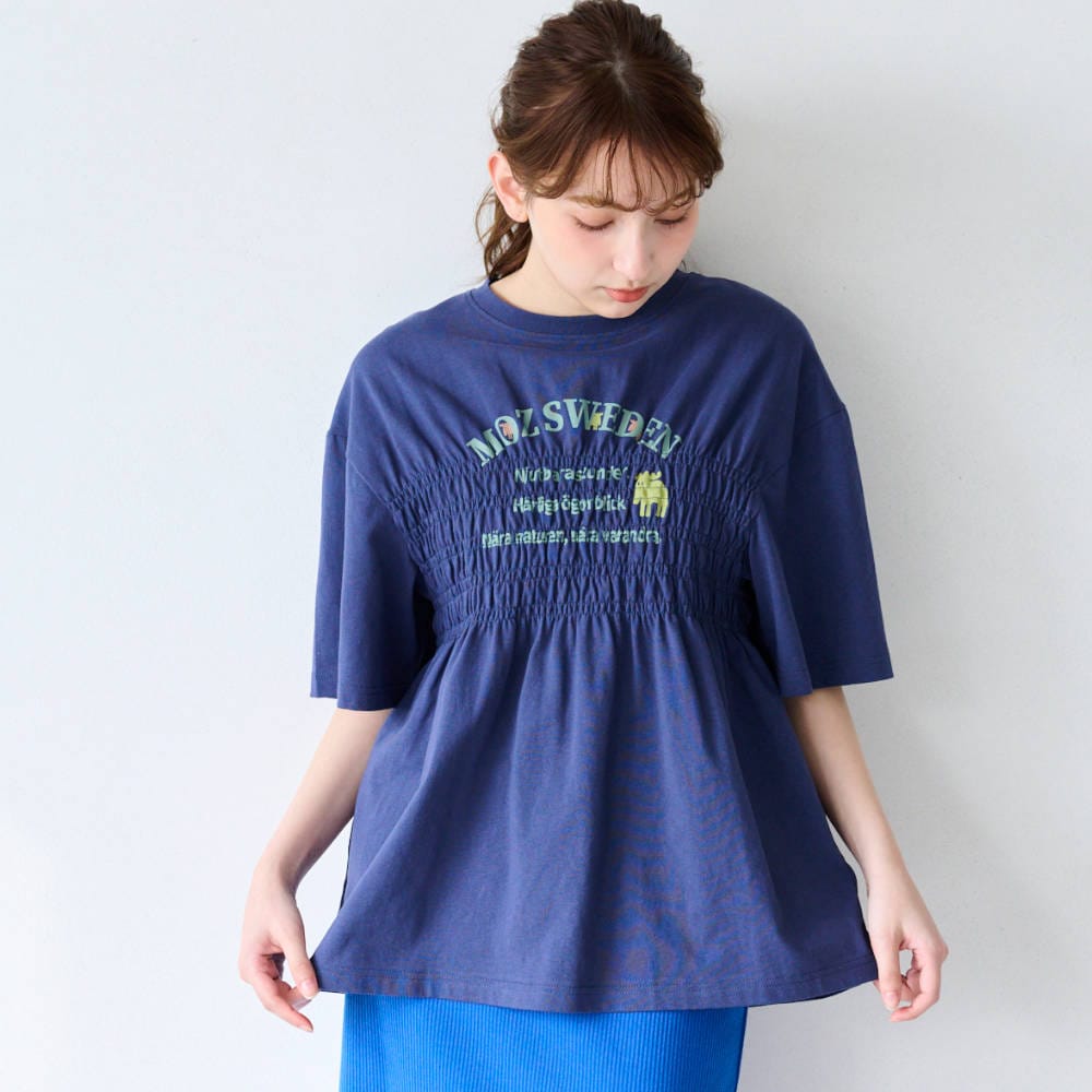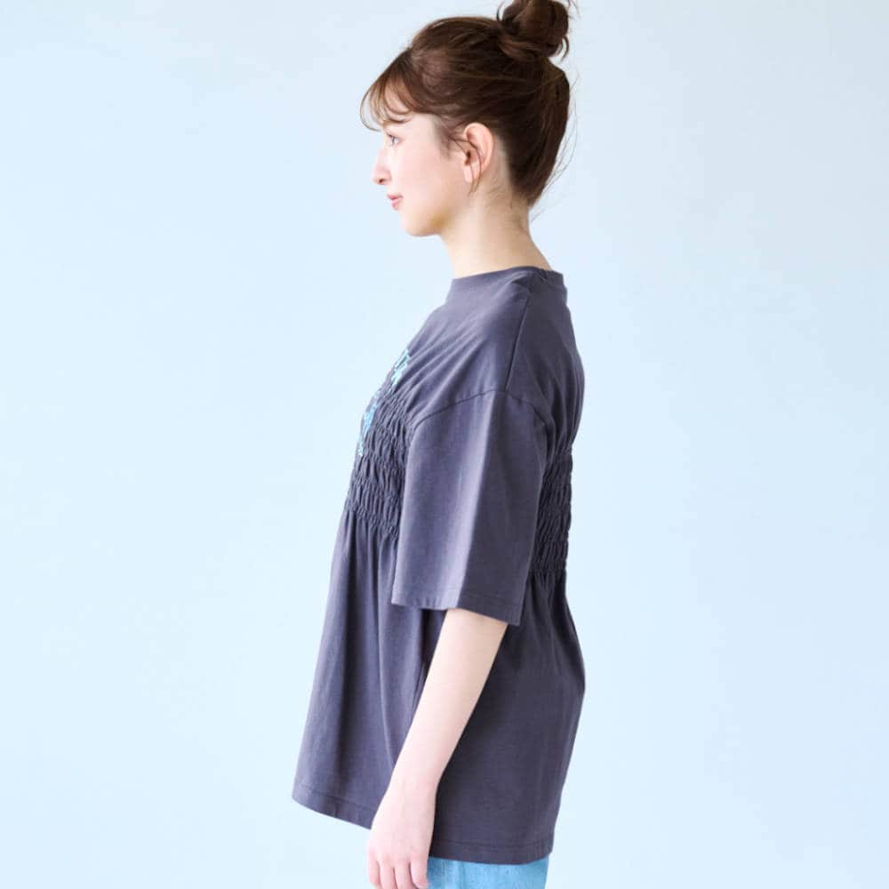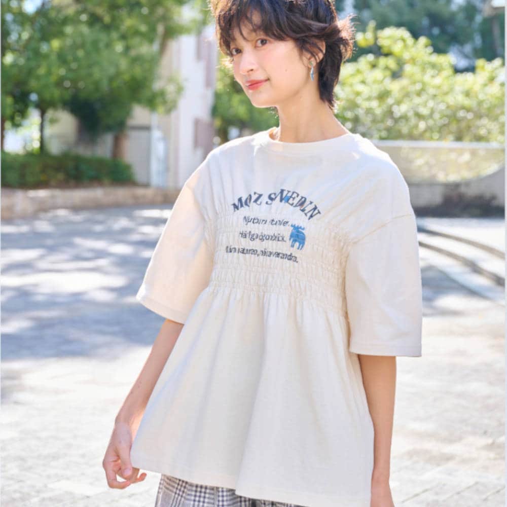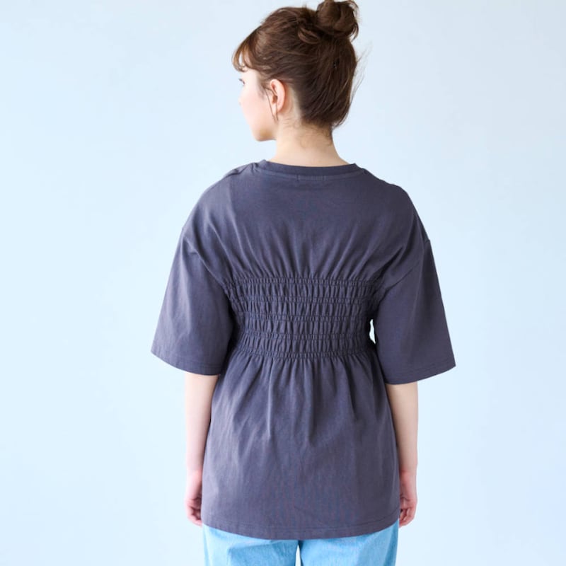 胸元シャーリングがポイントのTシャツ