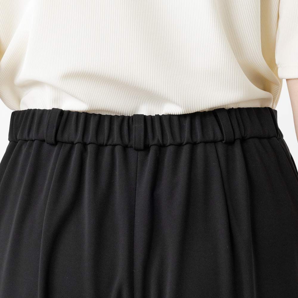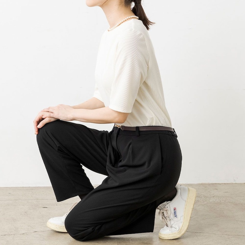 ・身体のラインを拾わない脚長効果のワイドパンツ