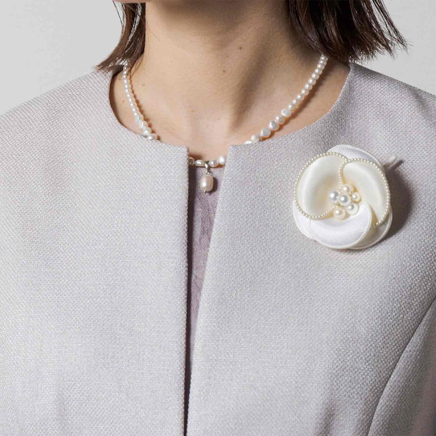 胸元を引き立てる上品コサージュ