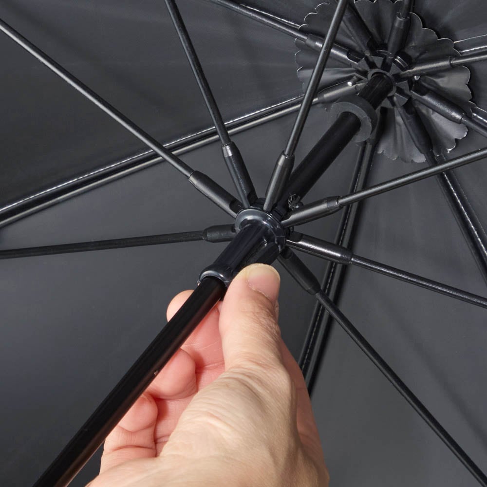 ※この傘の生地は、JIS L 1055 A法に基づく検査で100%の遮光率が確認されましたが、結果は傘生地の一部によるもので、製品全体の性能ではありません。