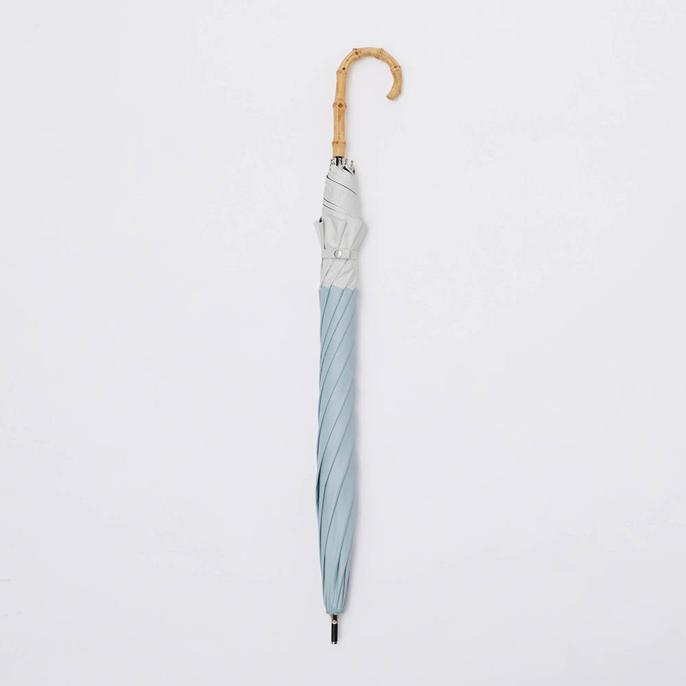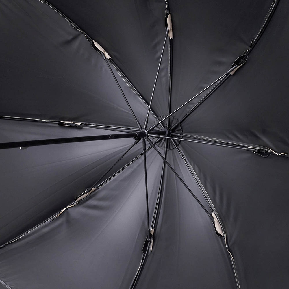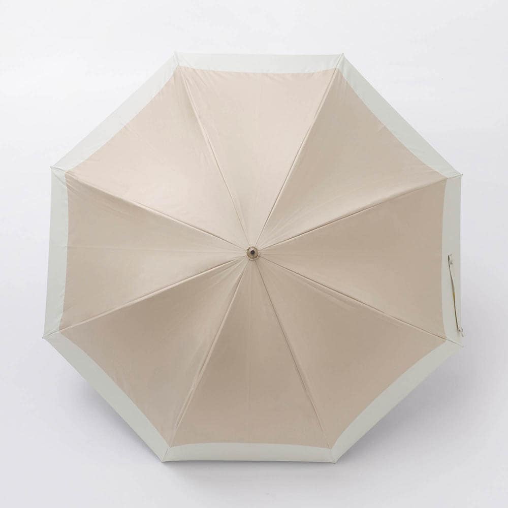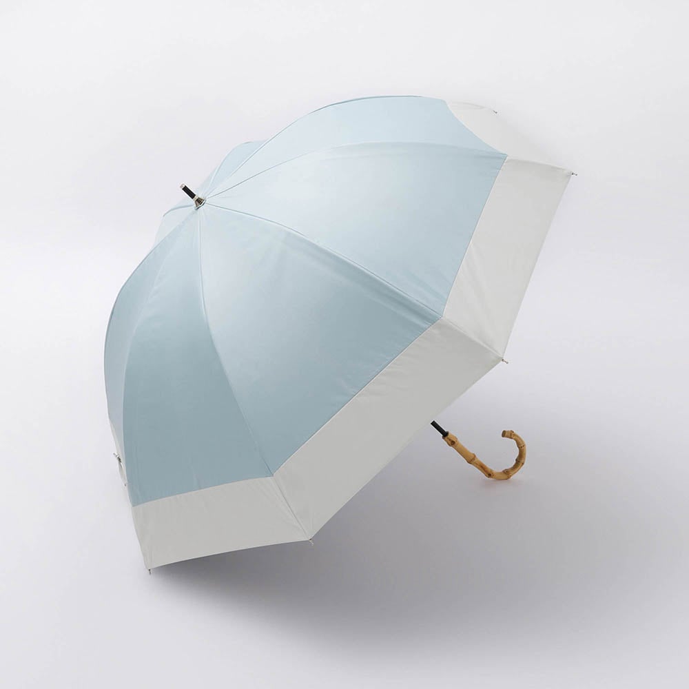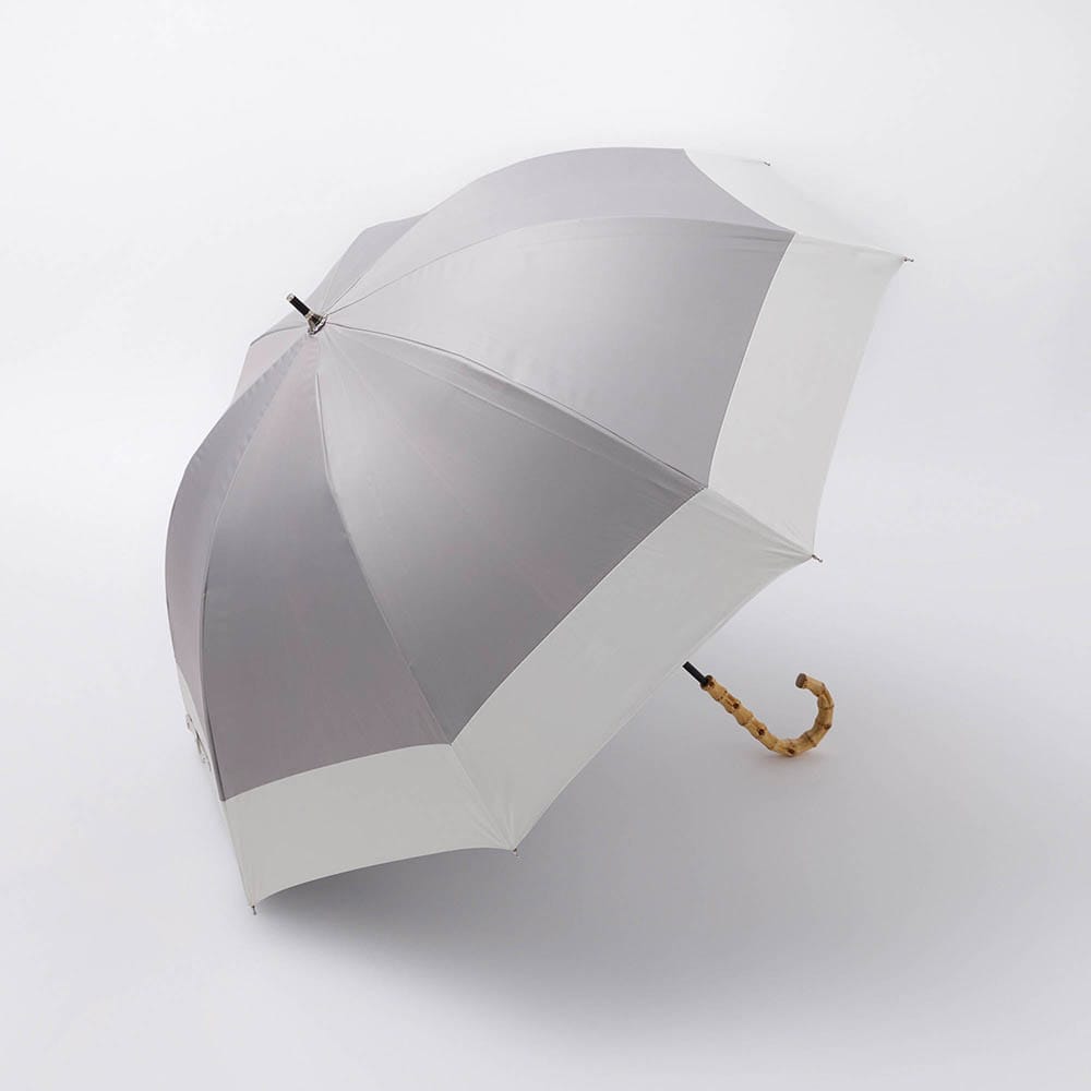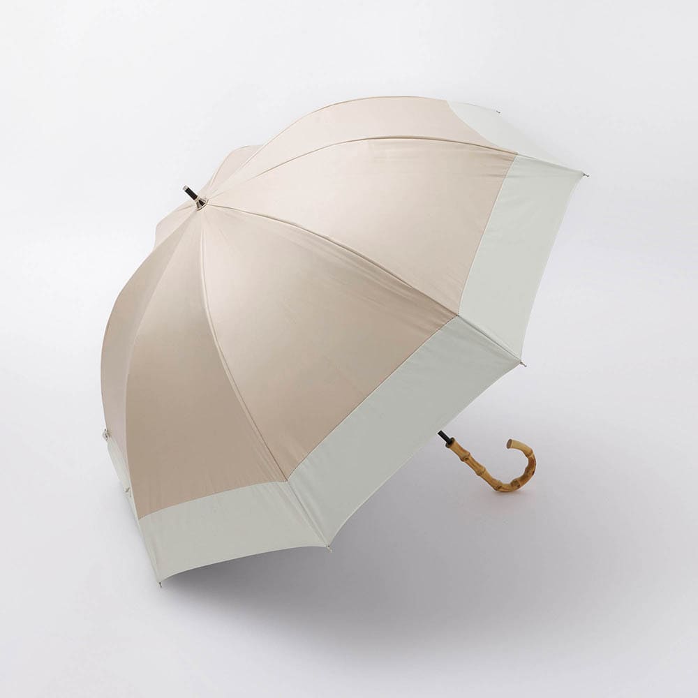 シンプルなバイカラーと高級感のあるバンブーハンドルがポイントの晴雨兼用傘です。UVカット率100%の完全遮光生地を使用し、裏面にはPUコーティング加工を施す事で100%の遮光率を実現。ドーム型の大きめサイズで広範囲をしっかりカバーし、安心してお出かけできます。デザインと機能性を兼ね備えた1本で、晴れの日も雨の日もエレガントに彩ります。