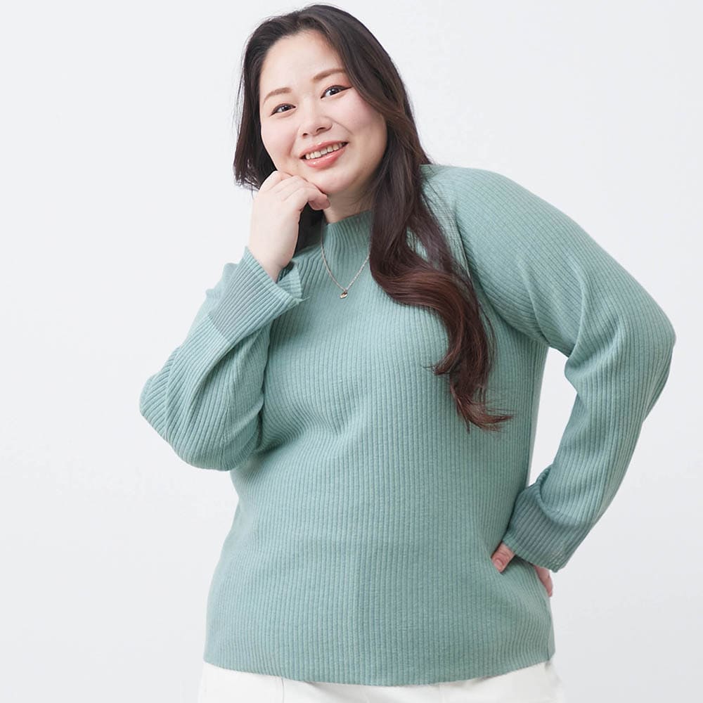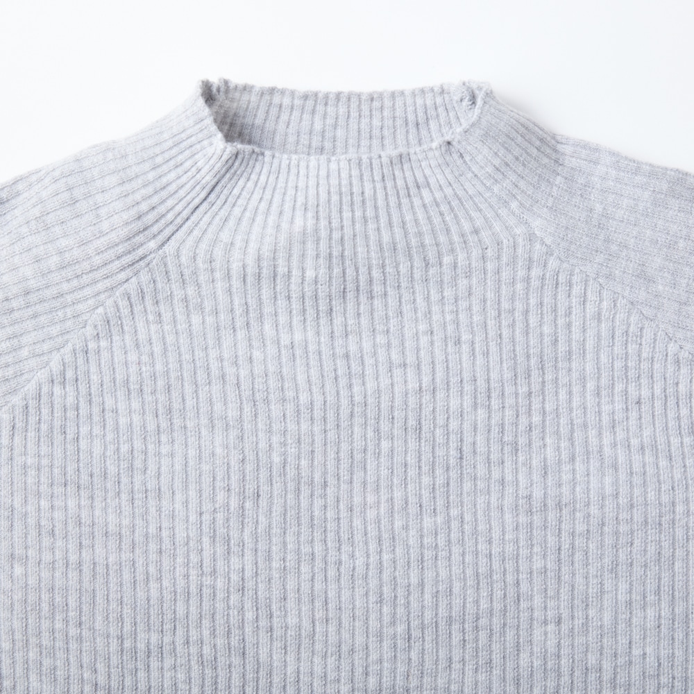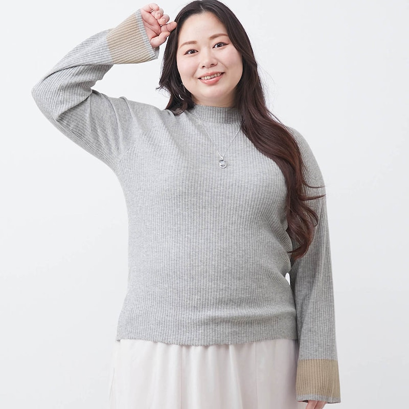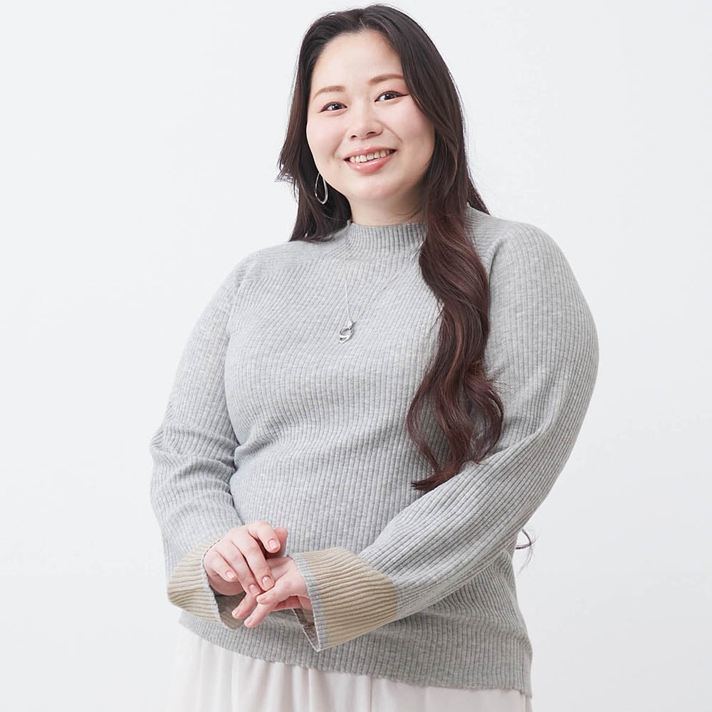 シアーな袖口が目を引くリブ素材のハイネックプルオーバー
