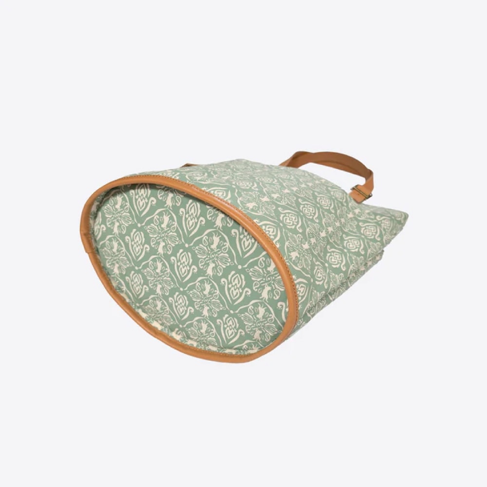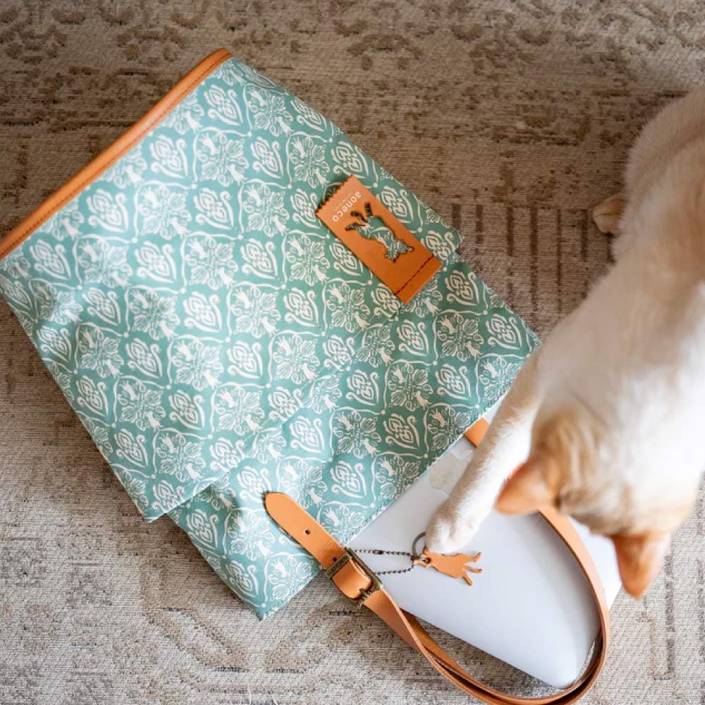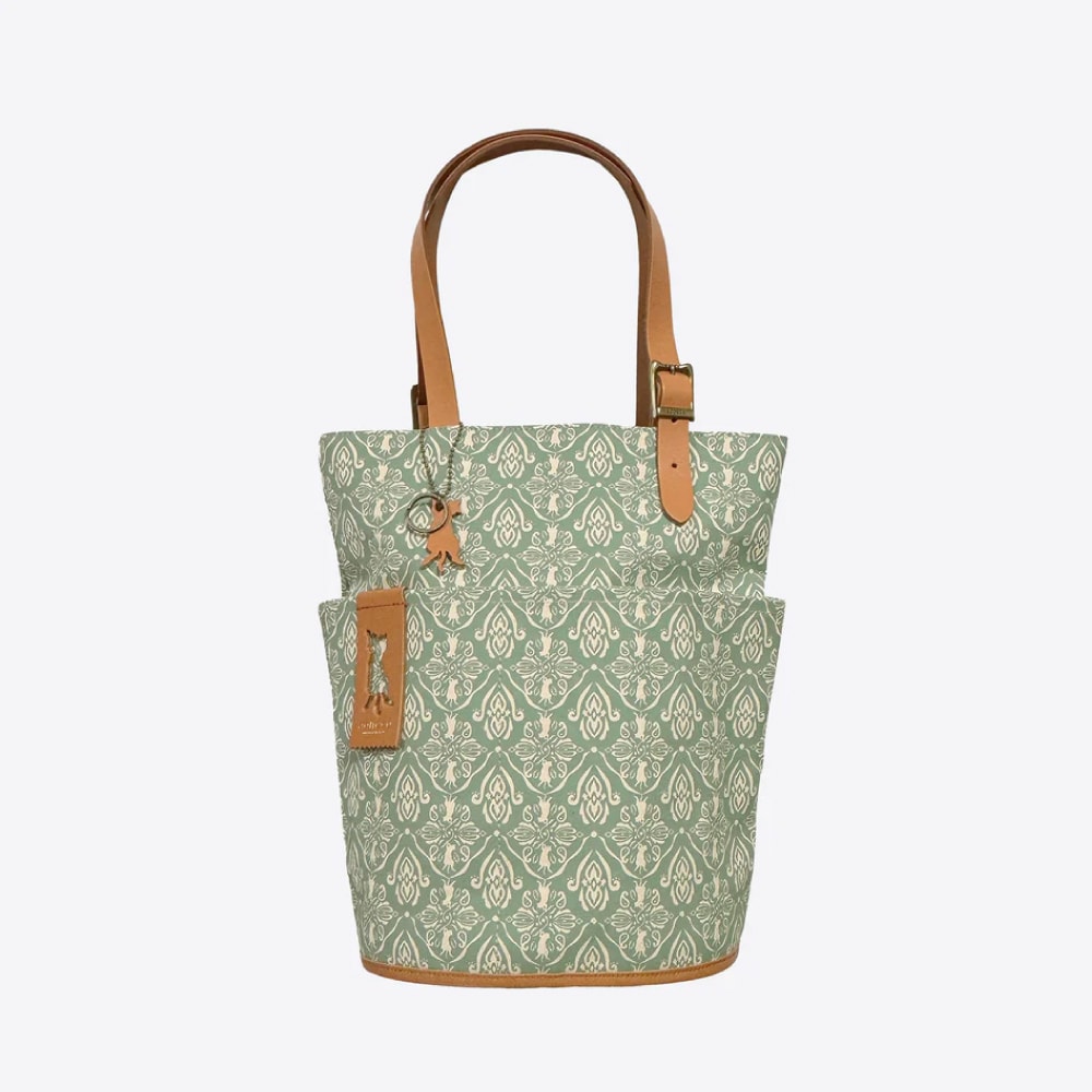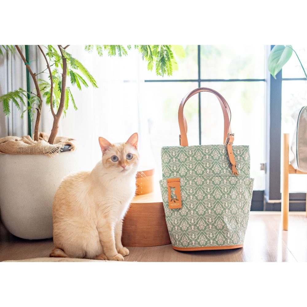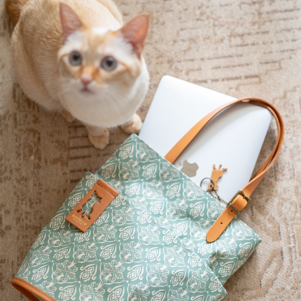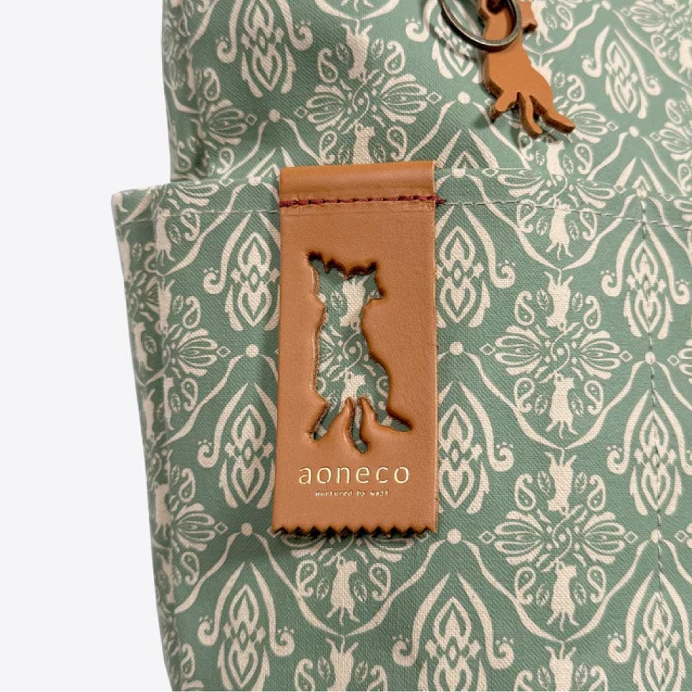 さりげなくネコ要素が満載の「aoneco(アオネコ)」のダマスクパターンのバケットトート。