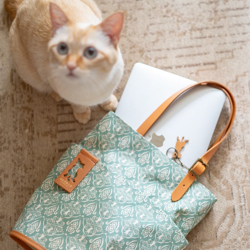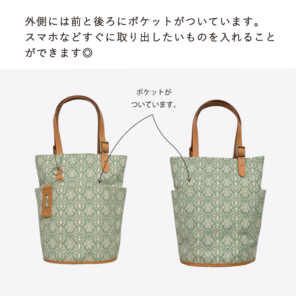 【保護ネコに寄付できる】「猫モチーフが、さりげない」ダマスク柄バケットトート[日本製]