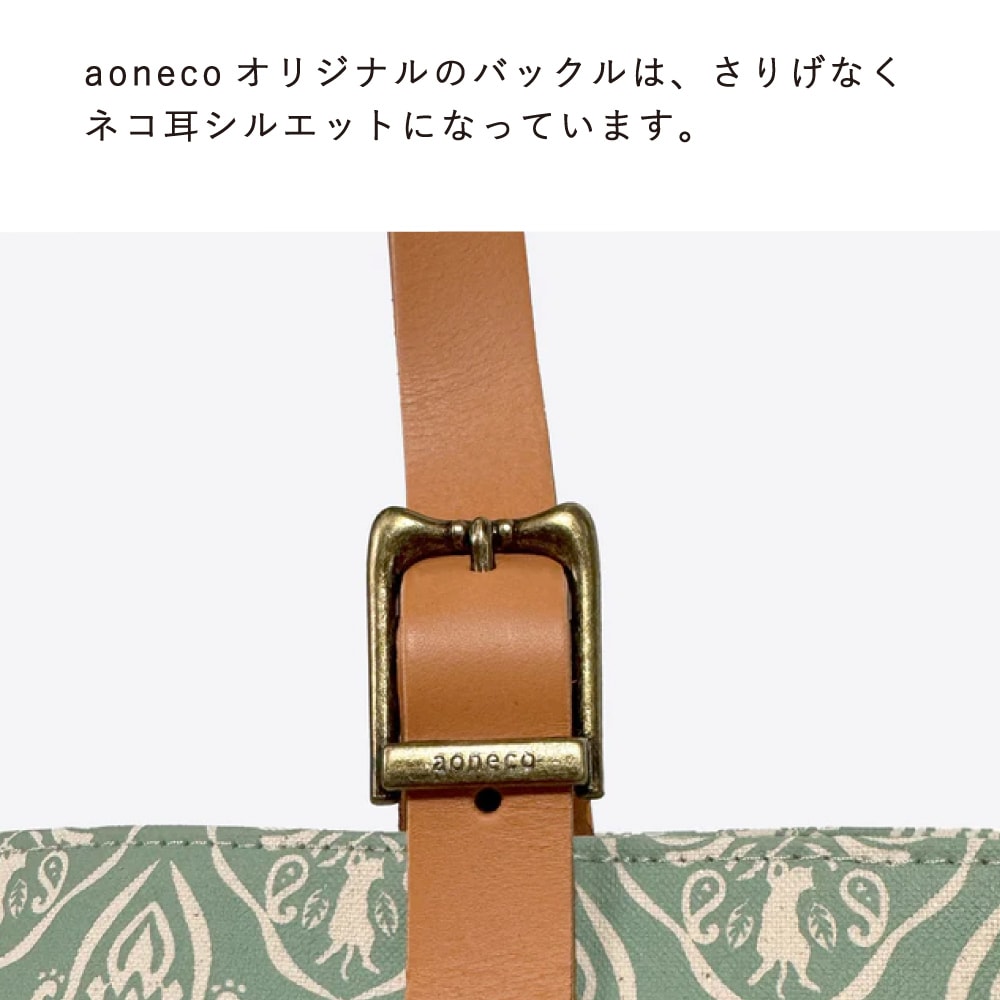●バックルはaonecoオリジナルのネコ耳シルエット。手紐の長さを調節することが可能です