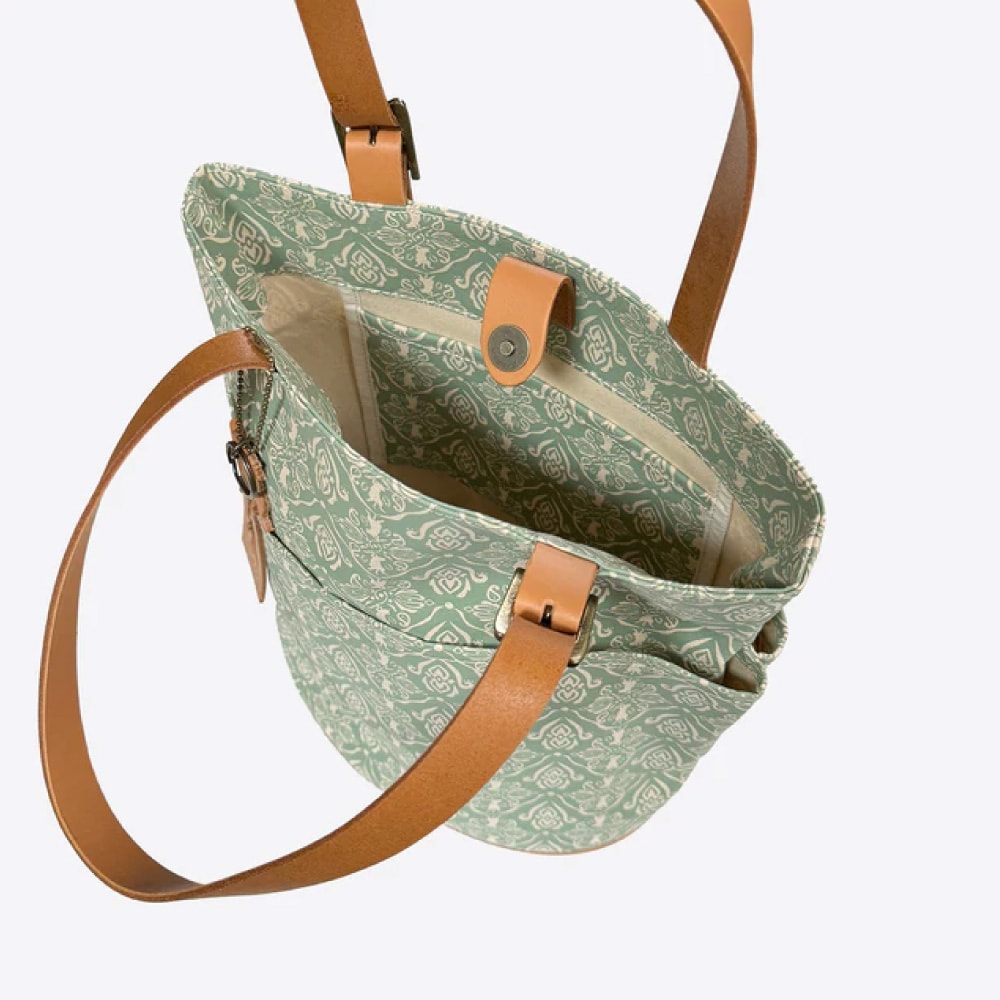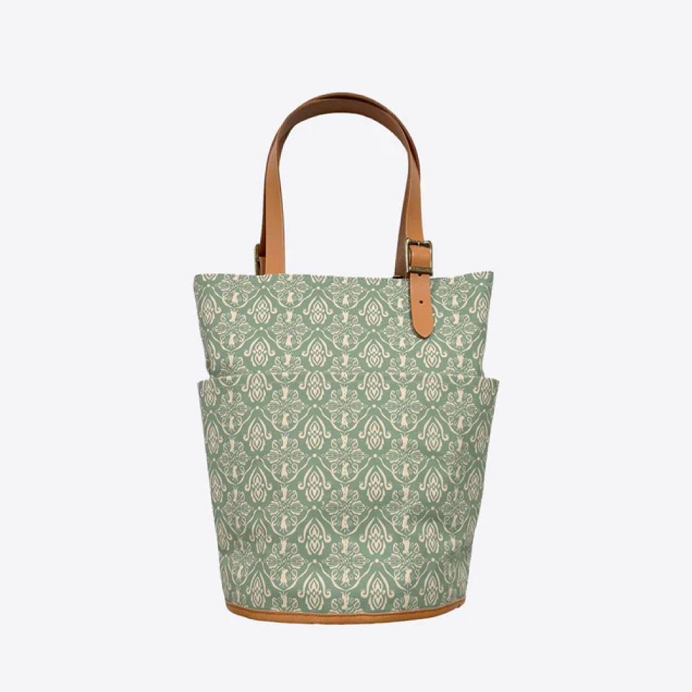 自分で選んだ支援先の保護施設に代金の約10%を寄付できるダマスク柄バケットトート