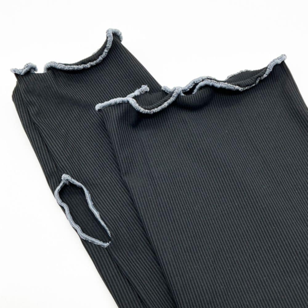 ・袖口のメロウ加工でガーリーな雰囲気とトレンドのリブニット生地が華奢で女性らしい印象をプラス
