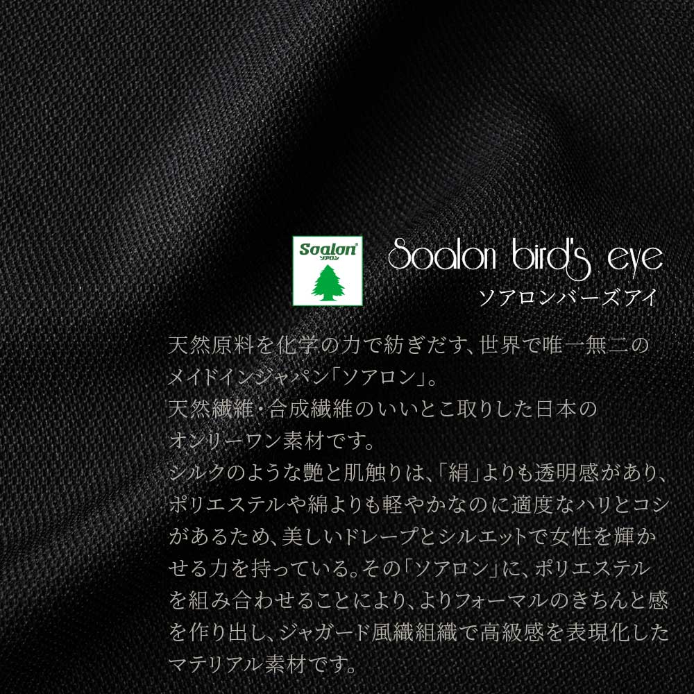 シルクのような艶と肌触りが魅力の高級トリアセテート繊維「ソアロン」を使用した生地です。ジャガード風の織り組織で高級感を表現しています。