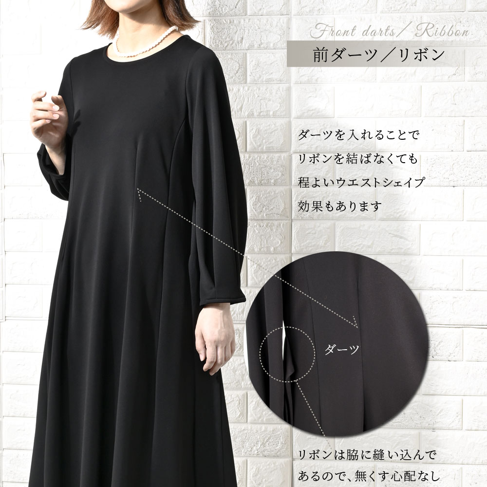 洗えるリボン使いAラインワンピース[日本製] 【喪服・礼服】