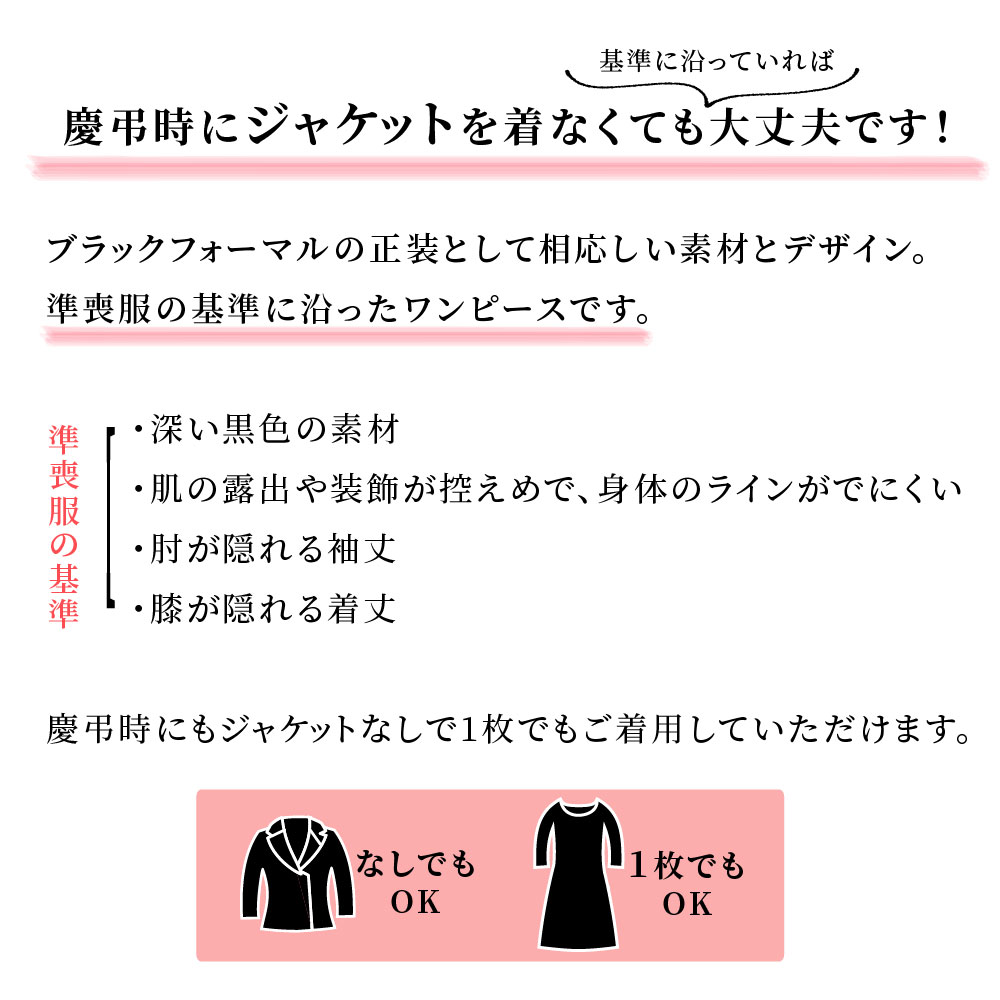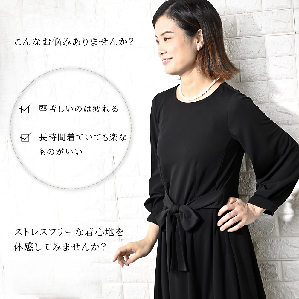 喪以外のシーンにも着用いただける汎用性の広いワンピースです。