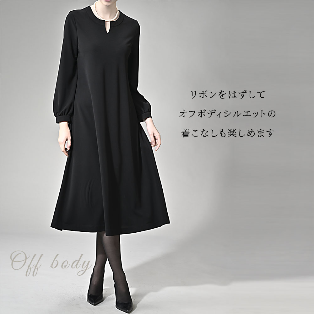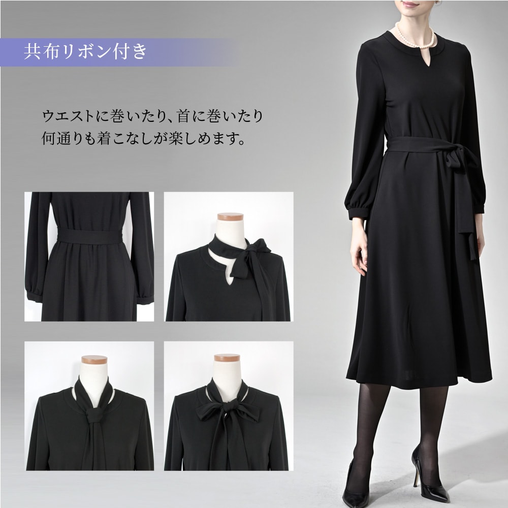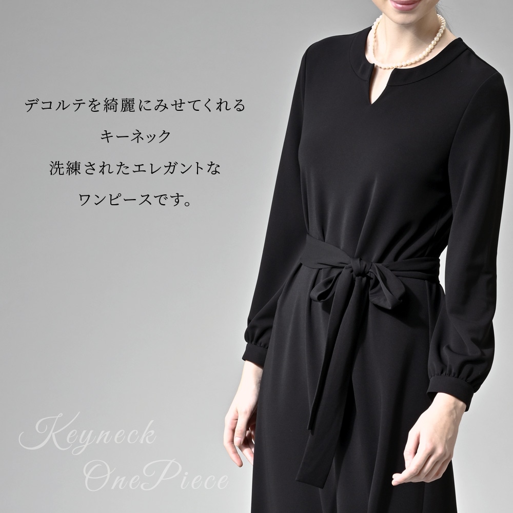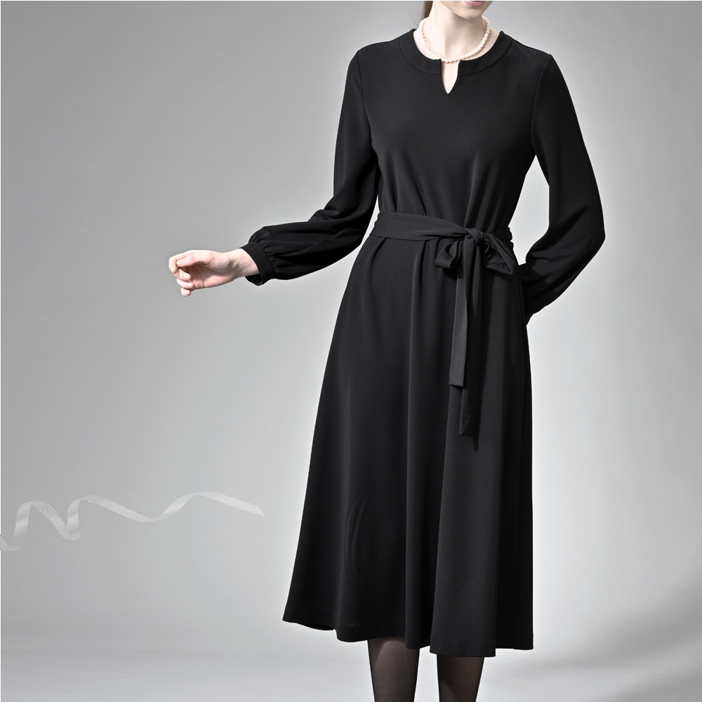 洗えるリボン付きキーネックワンピース[日本製] 【喪服・礼服】
