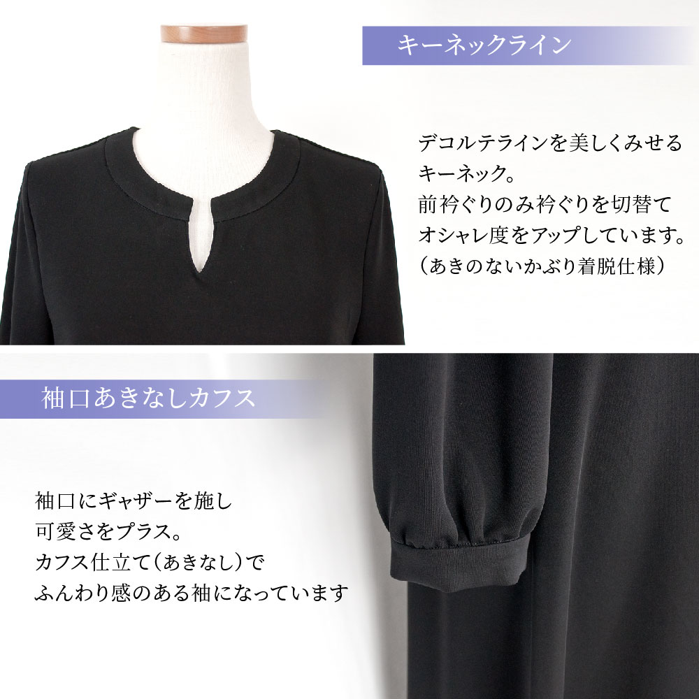 喪以外のシーンにも着用いただける汎用性の広いワンピースです。