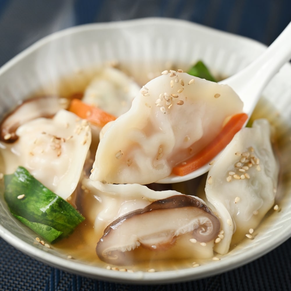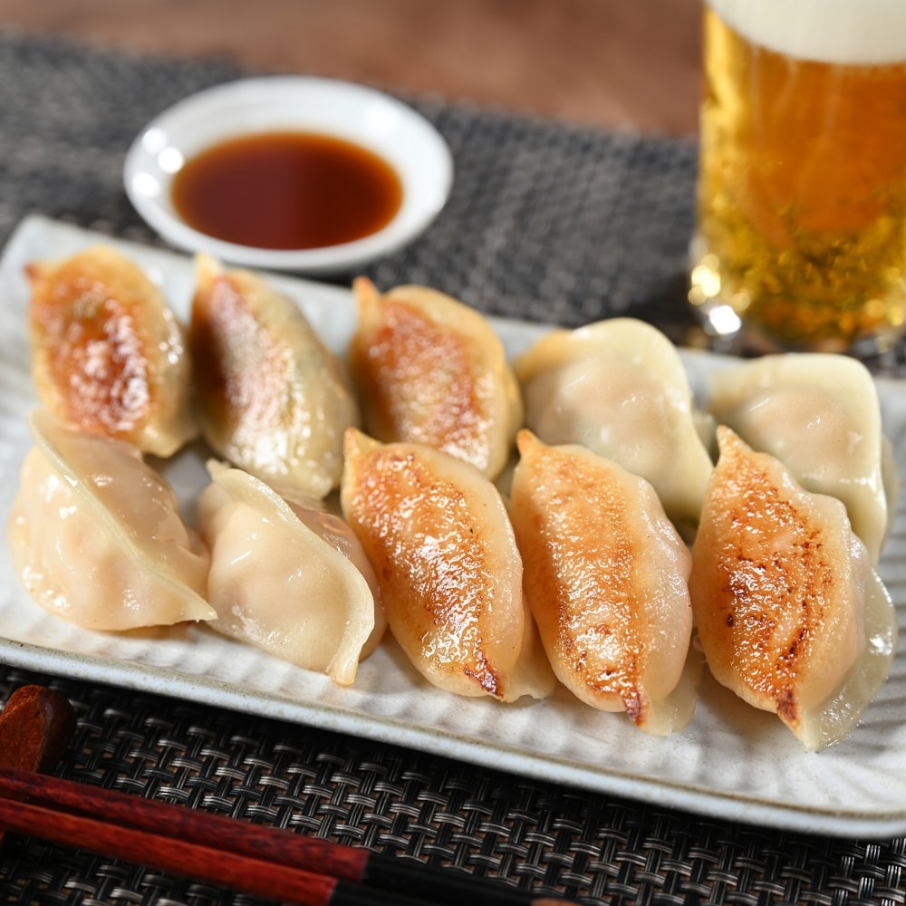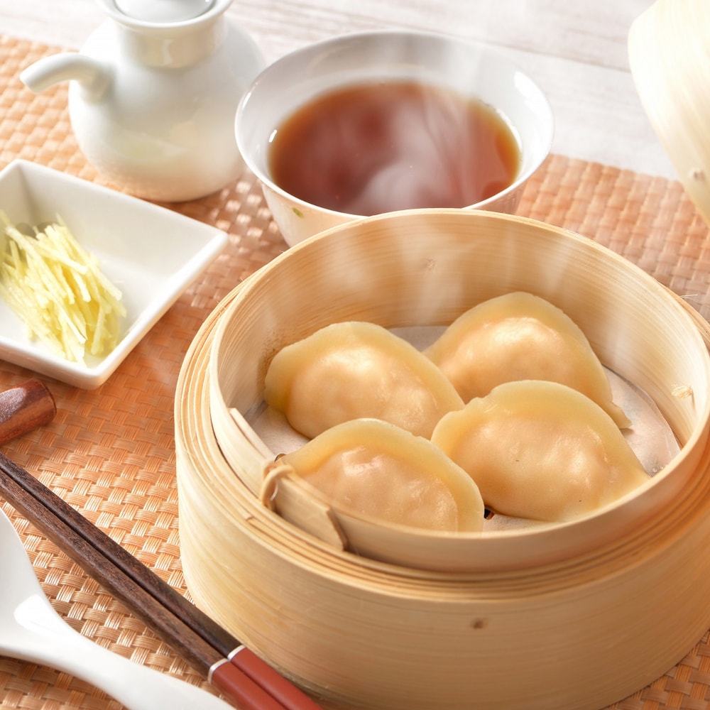 ぷりぷりの海老をふんだんに使った具材をもちもちの皮で包んだ餃子。