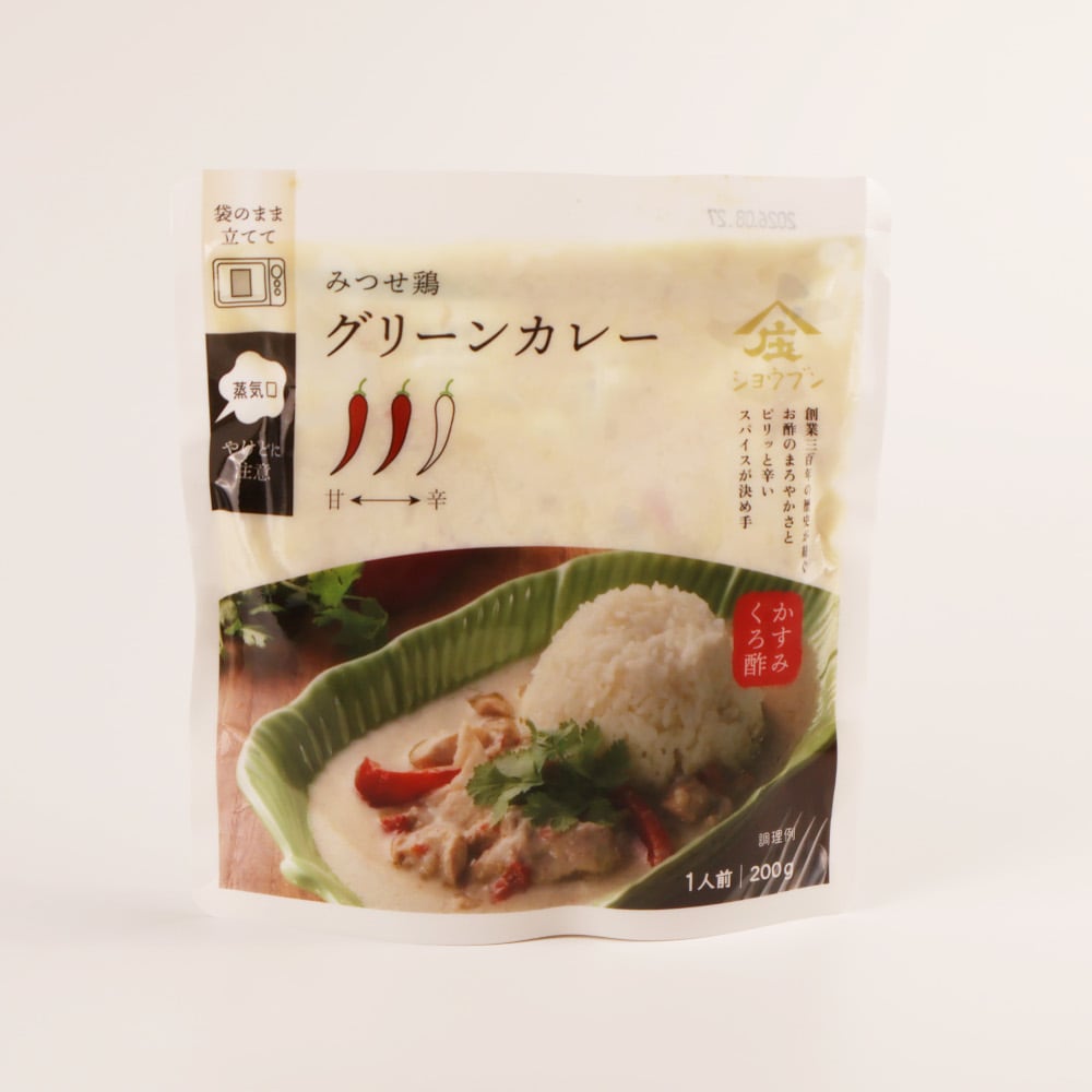 創業300年老舗のお酢屋「庄分酢」との共同開発品のグリーンカレーです。