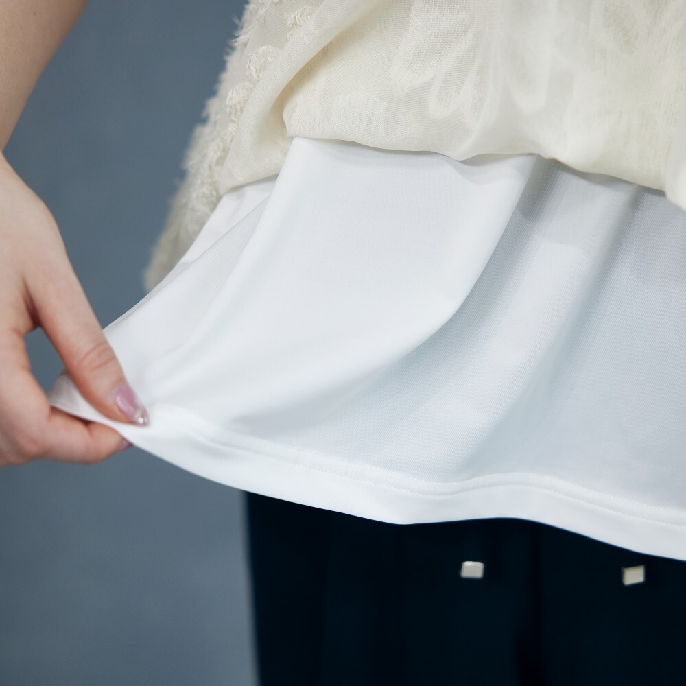 ●表地:<織物>ポリエステル100%(ジャカード)、裏地:<カットソー>ポリエステル90%、ポリウレタン10%(スムース)、別布部分:ポリエステル96%、ポリウレタン4%