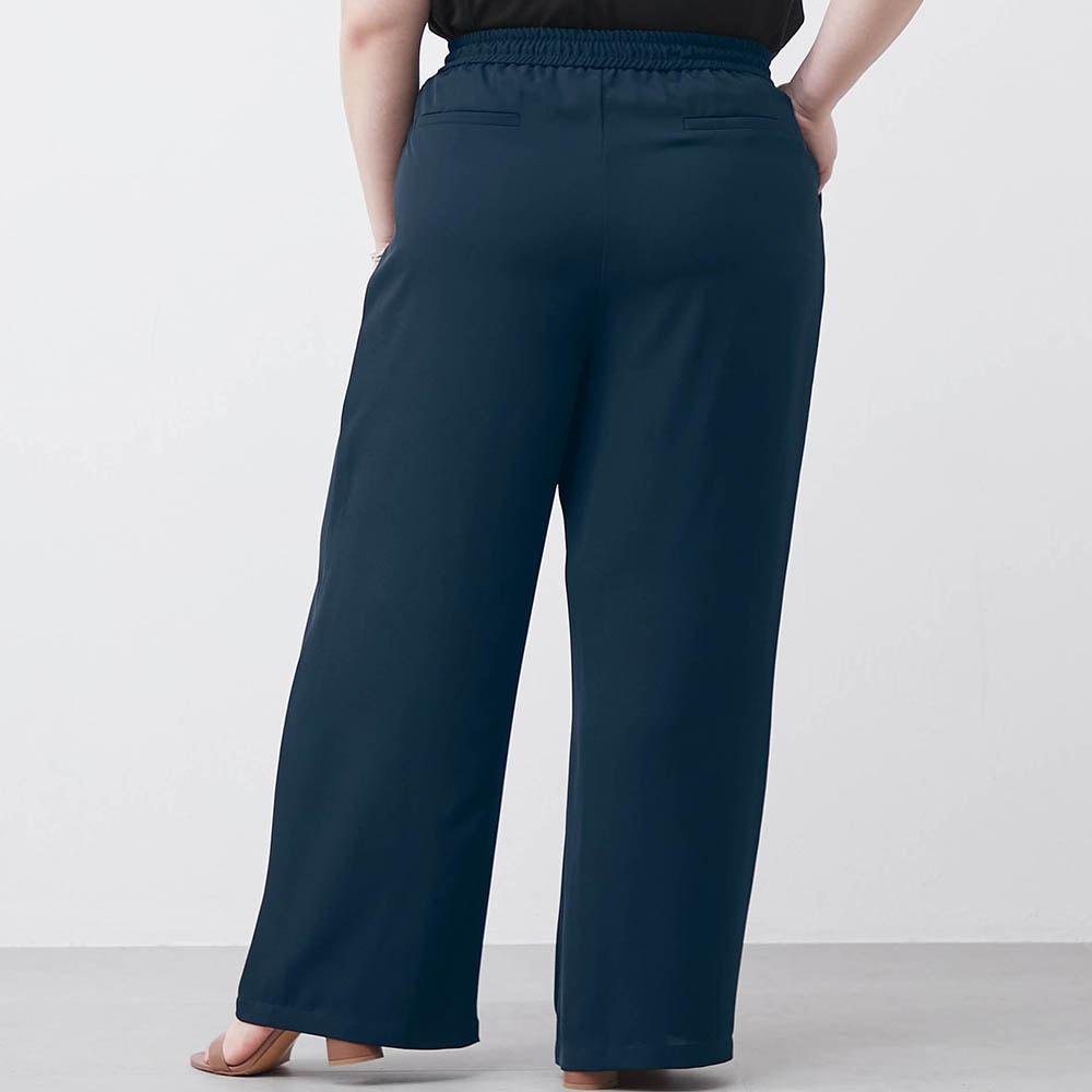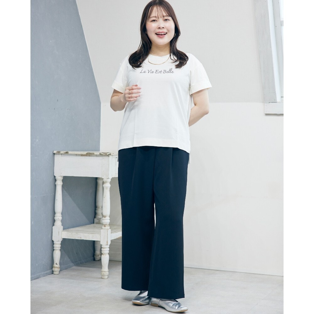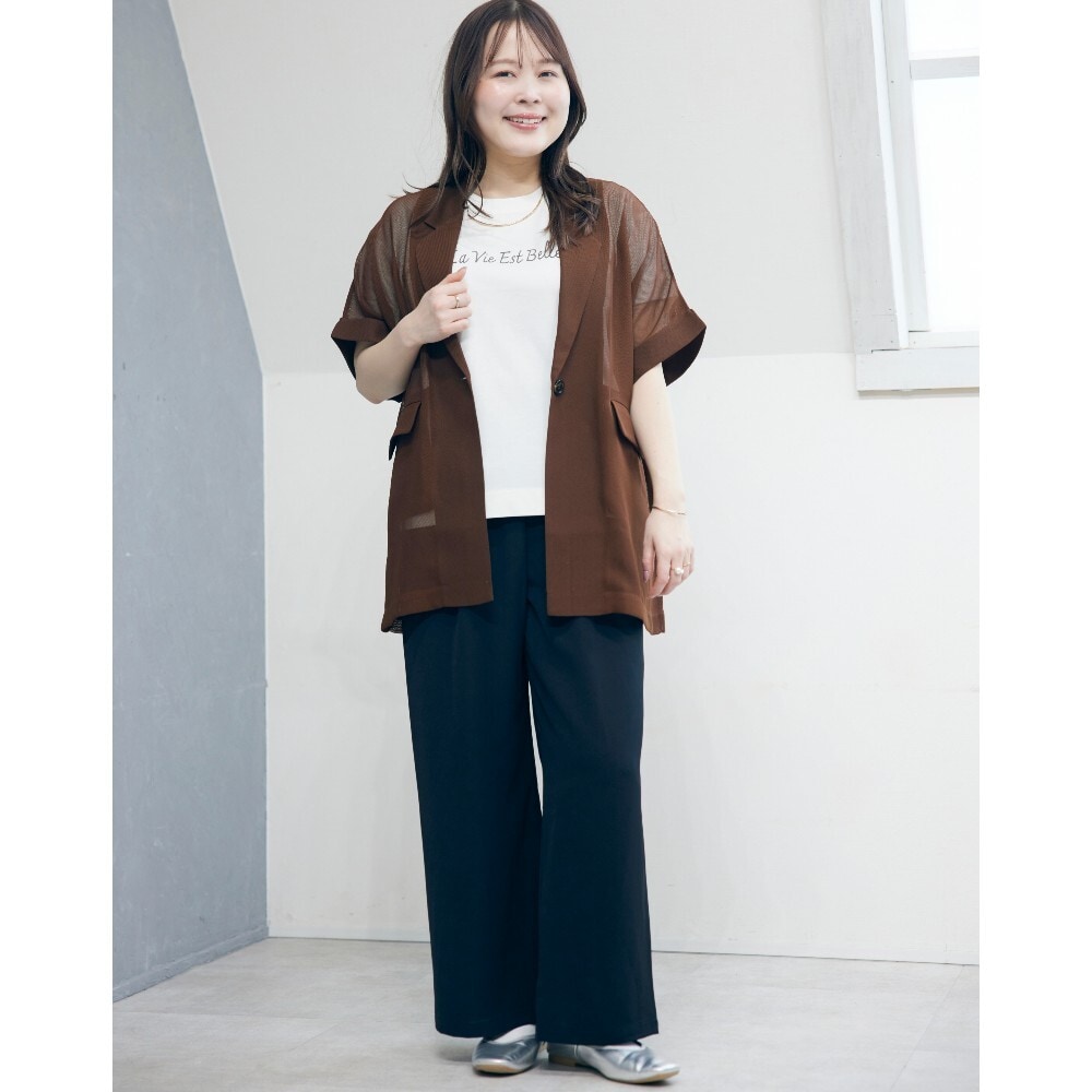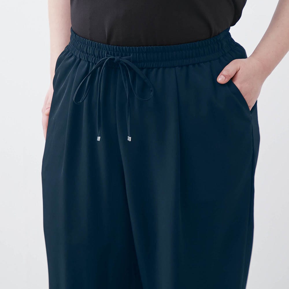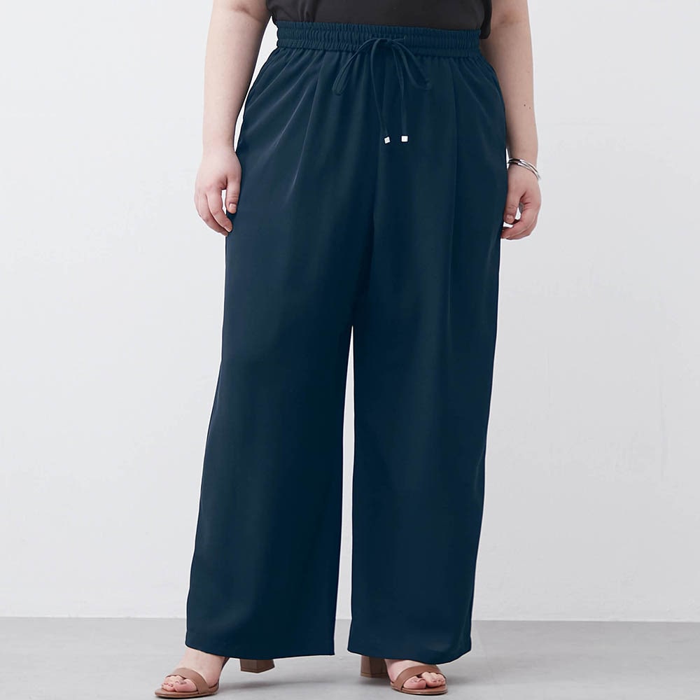 商品説明の情報量が少なめだったので不安がありましたが、インフルエンサーの方が着用している写真で判断し、購入してみました。結果良かった。骨ストぽっちゃりの私ですが、心配だった腰まわりの膨らみがあまり無くてわりとスッキリ見えます。生地はツルツルというかすべすべした感じ(写真ではわかりにくかった)。シワになりにくいと思います。