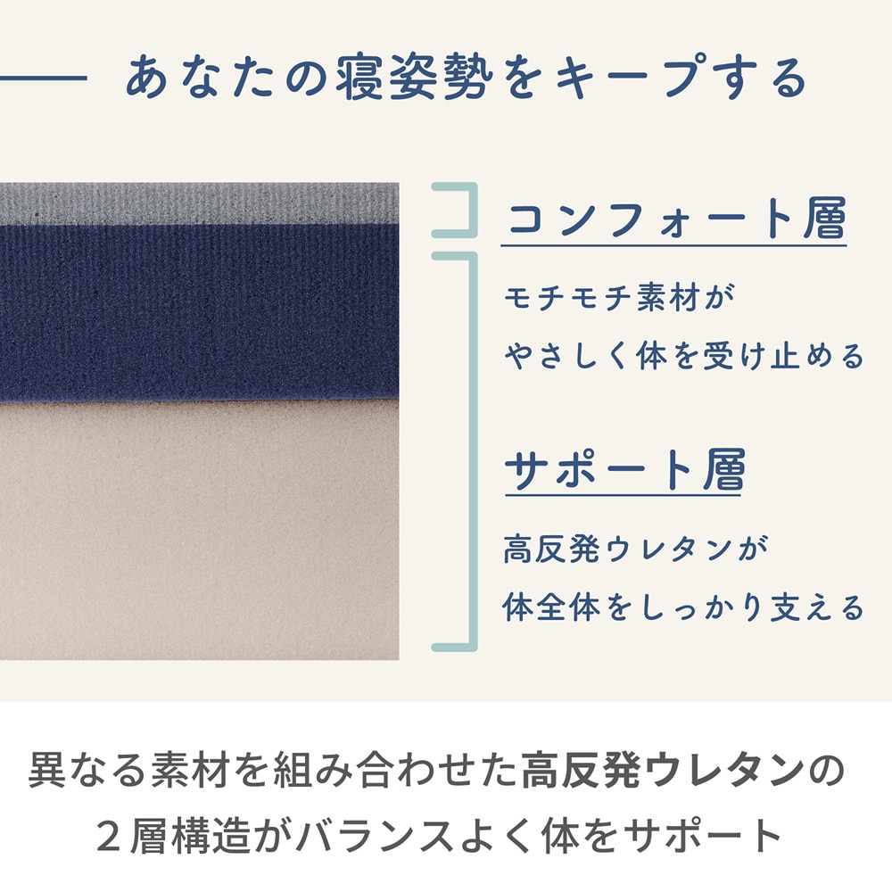 ●異なる素材を組み合わせた高反発ウレタンの2層構造がバランスよく体をサポート