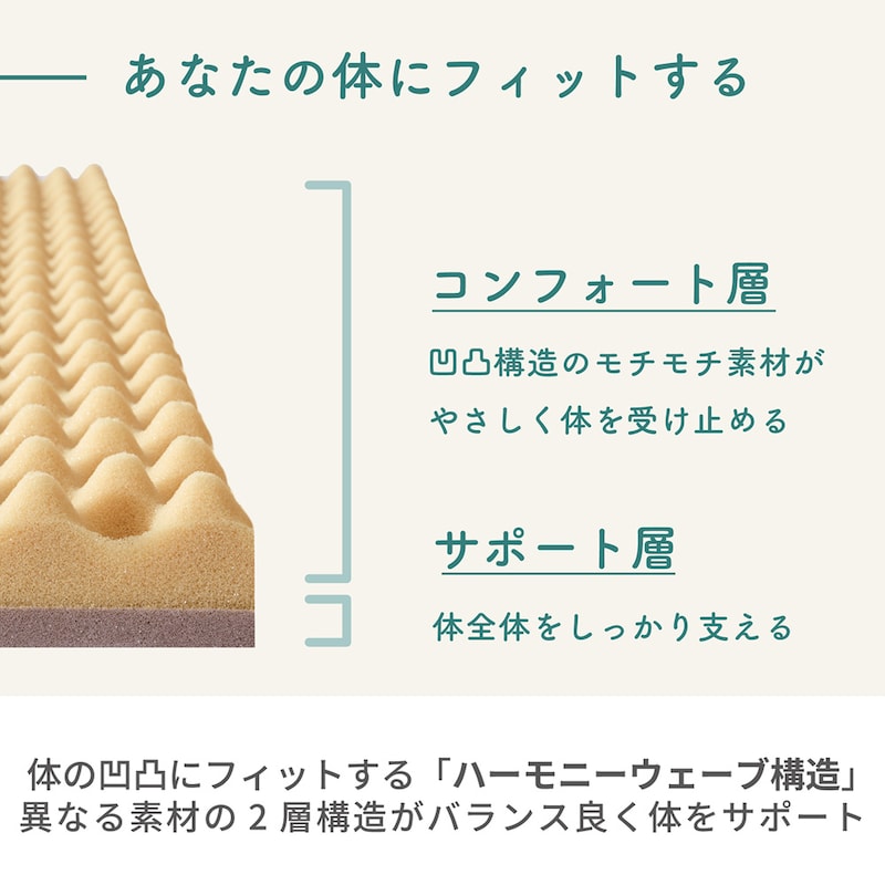 凹凸構造が体にフィットしながら、優しく包み込まれるような寝心地