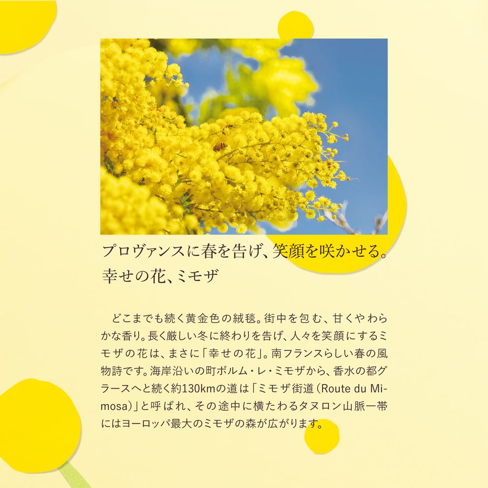明るく弾けるミモザの香りに包まれて、うるおい満ちるなめらか肌へ。