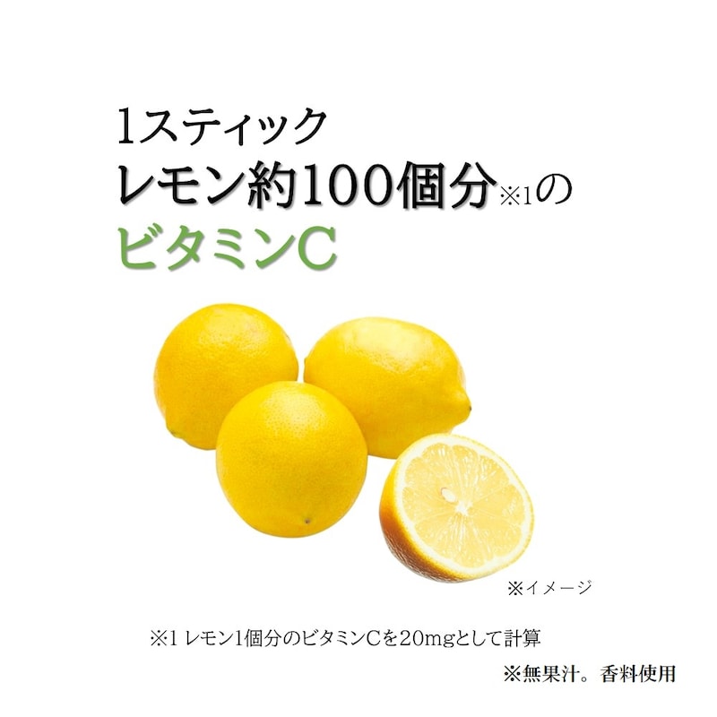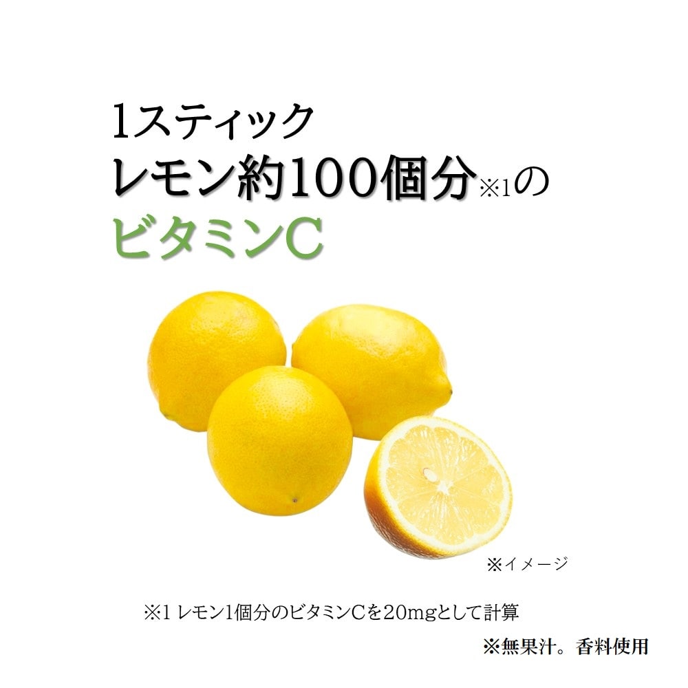 2000mgのビタミンCをはじめ、ビタミンB群などの水溶性ビタミン9種+ビタミン様成分を1スティックに集約。