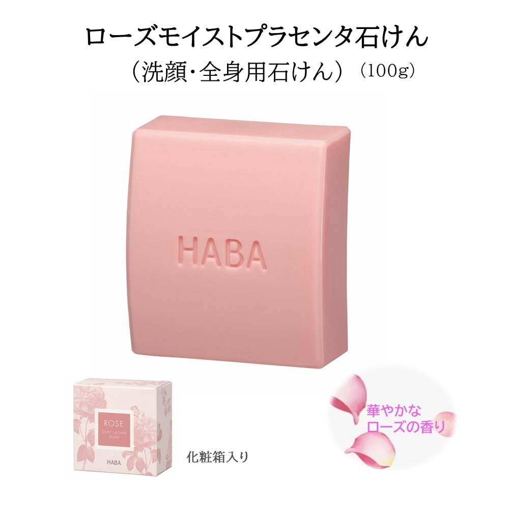 うるおい成分をたっぷり配合した華やかなローズの香りの「ローズモイストプラセンタ石けん」、