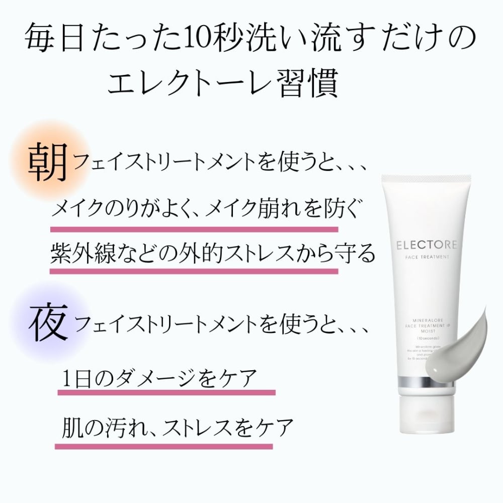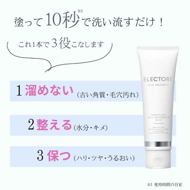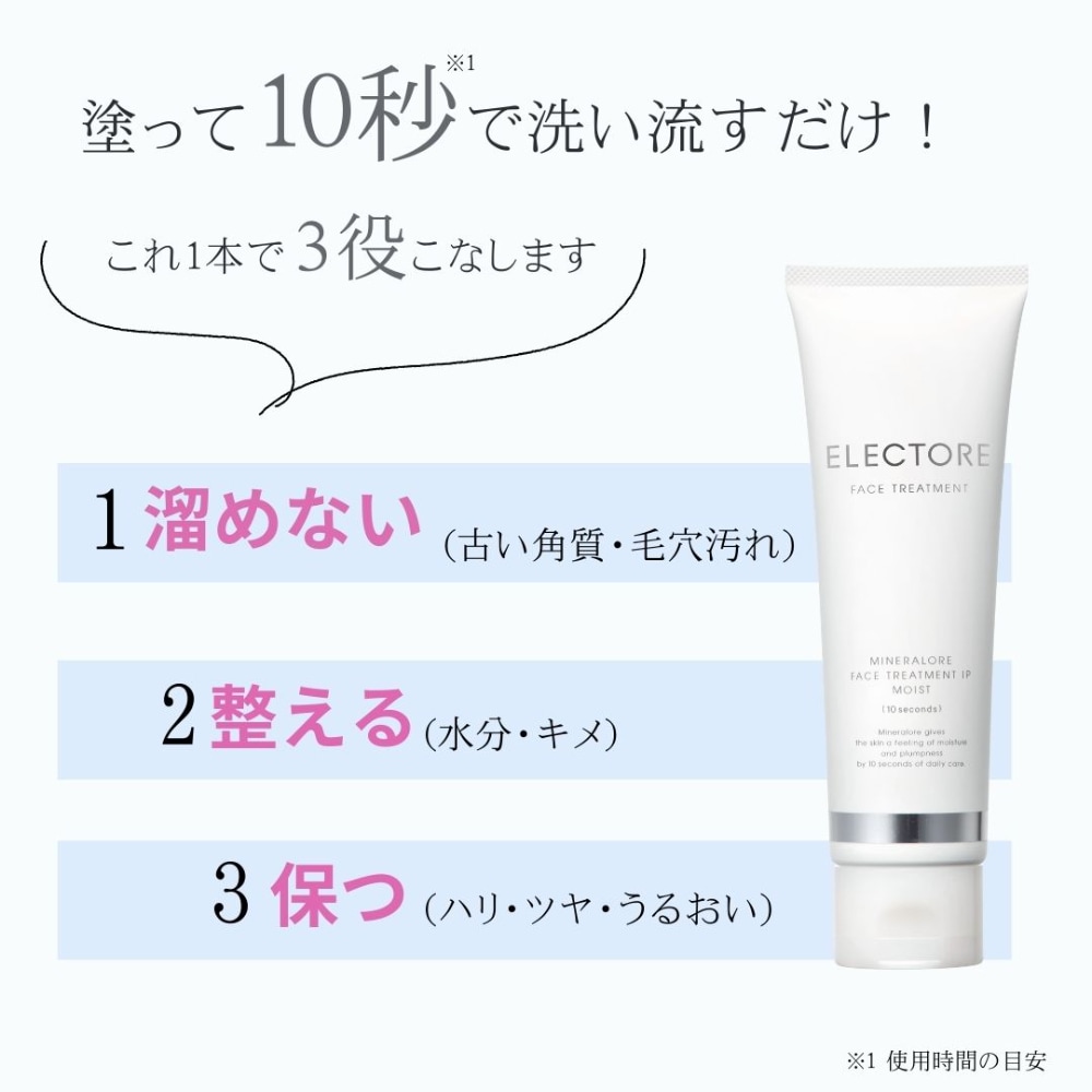 「ミネラルオーレ フェイストリートメントIPモイスト」は、洗顔後、濡れた肌に約10秒(※1)なじませて洗い流すだけのエイジングケア(※2)。