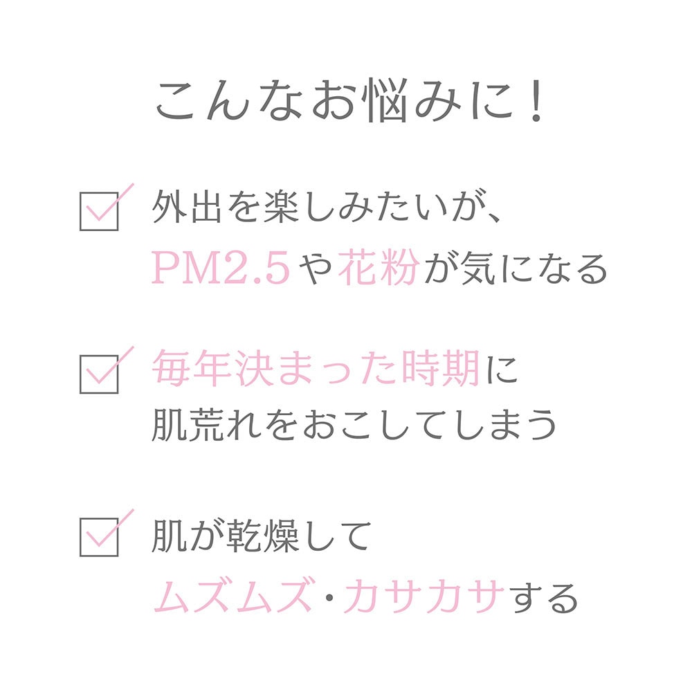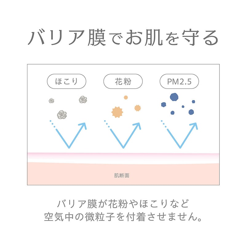 メイクがピタッと密着し、うるおいヴェールで乾燥要因となる外的刺激(PM2.5、花粉、ホコリなど)から肌をまもる保湿ミストです。