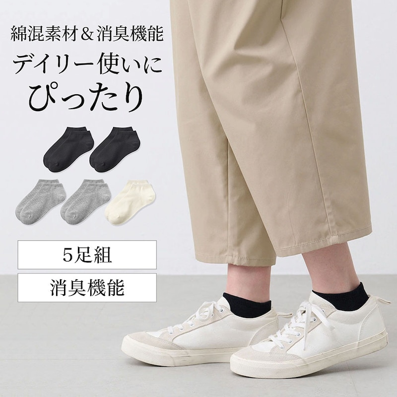・まとめ買いに嬉しい5足セット。忙しい毎日の洗い替えにも重宝します