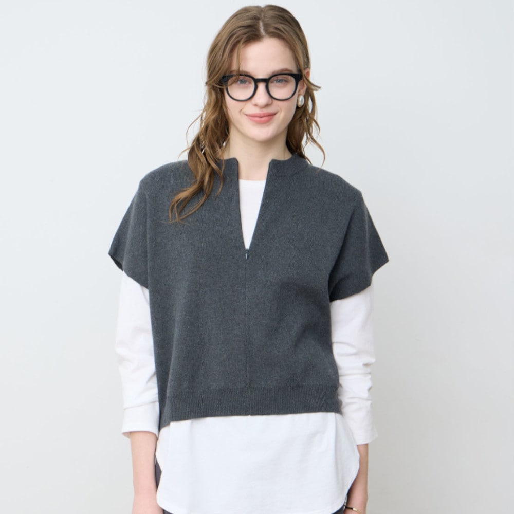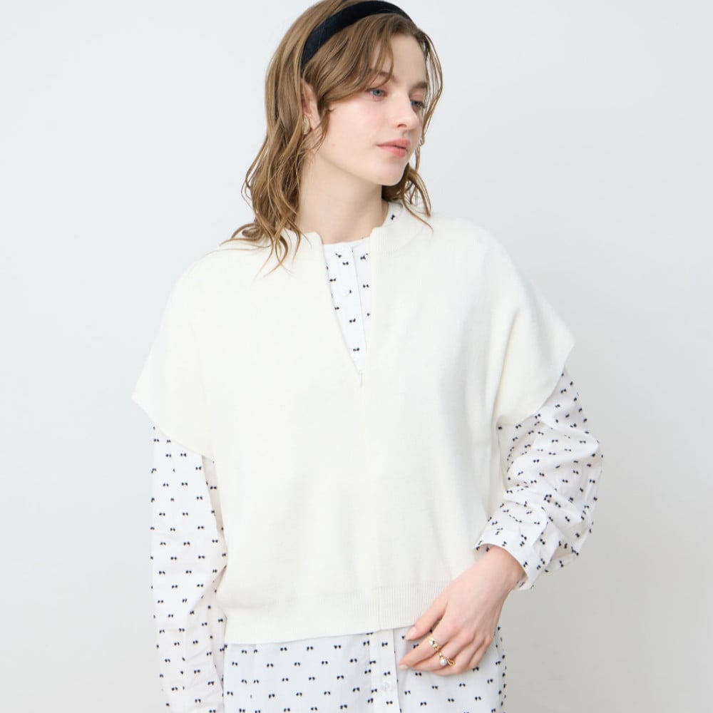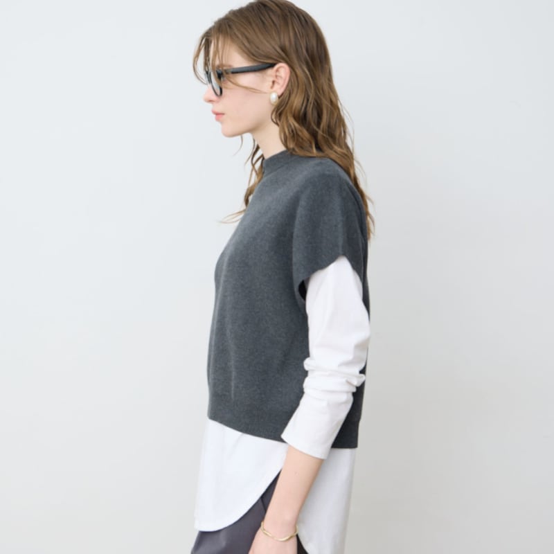 レイヤードを洗練させる上品シルエットのニットベスト