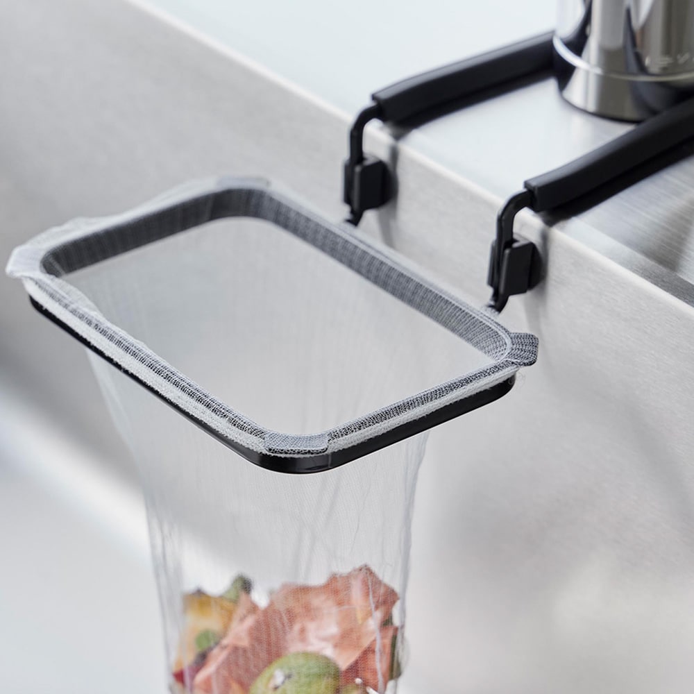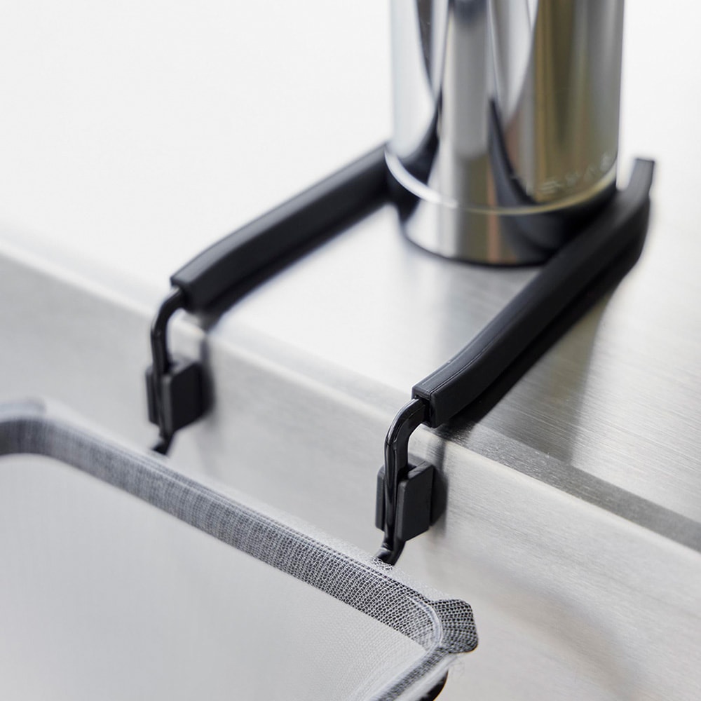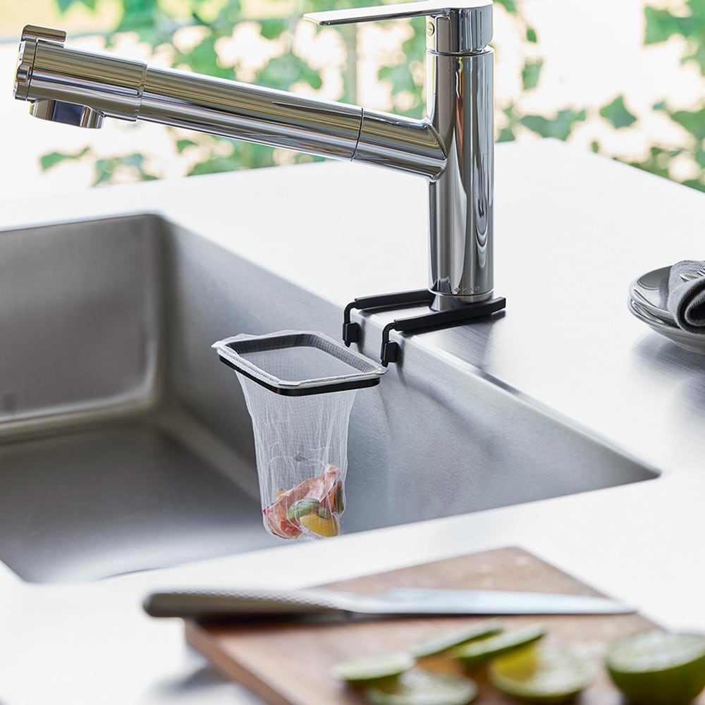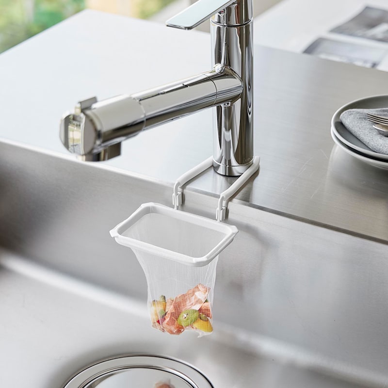 • 蛇口に挟むだけ。シンクを汚さない水切りネットホルダー