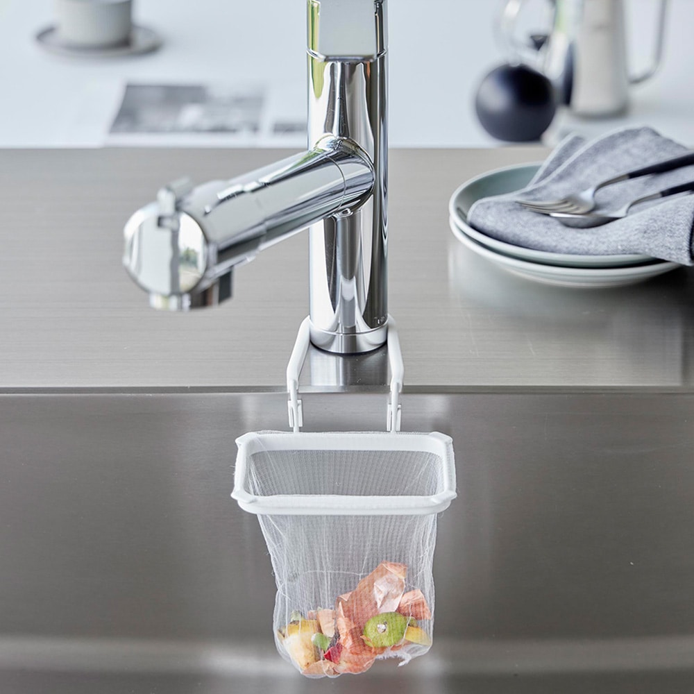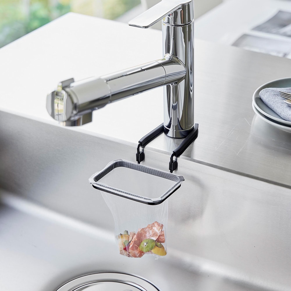 蛇口に挟むだけ。シンクを汚さない水切りネットホルダー