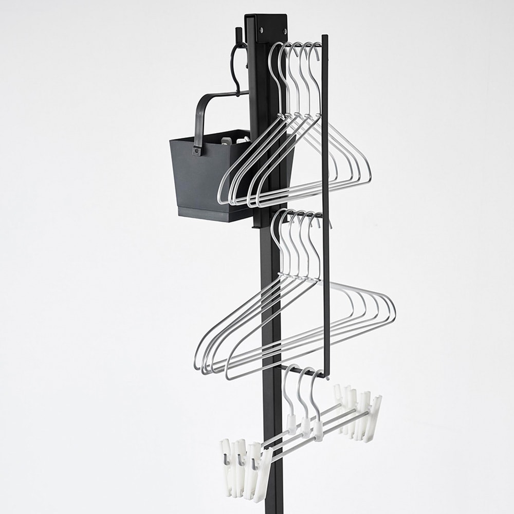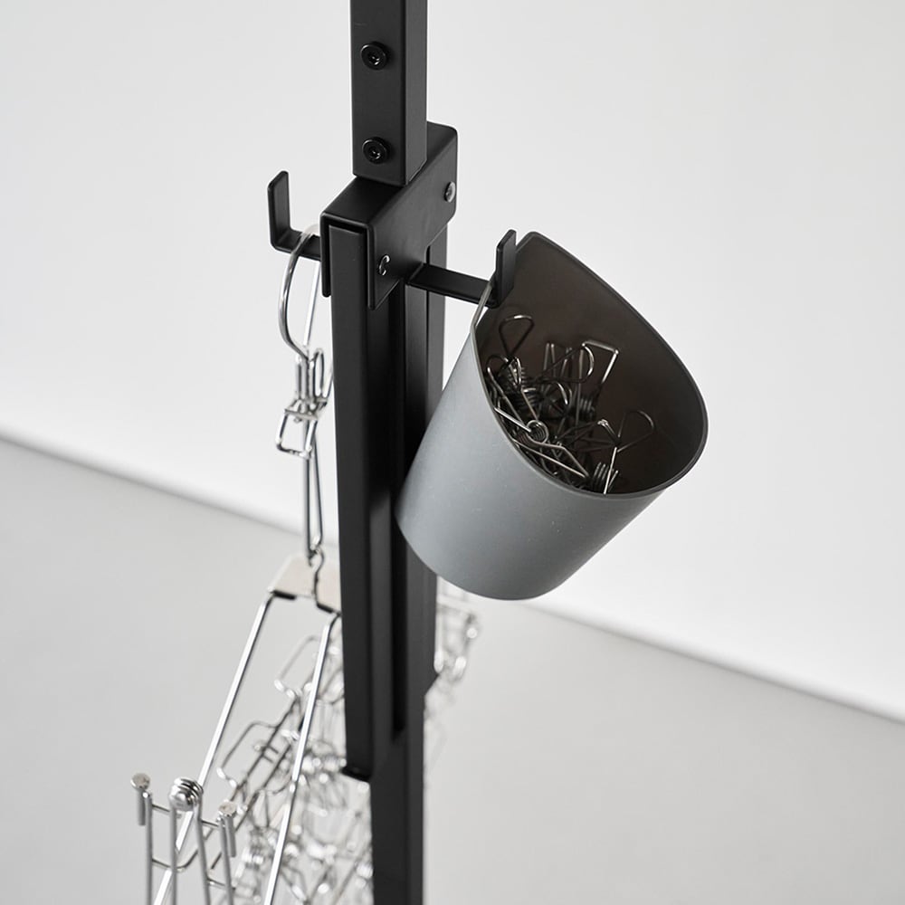 ●上部と中央部には洗濯ばさみなどの小物やハンガーを掛けられる便利なフック付き