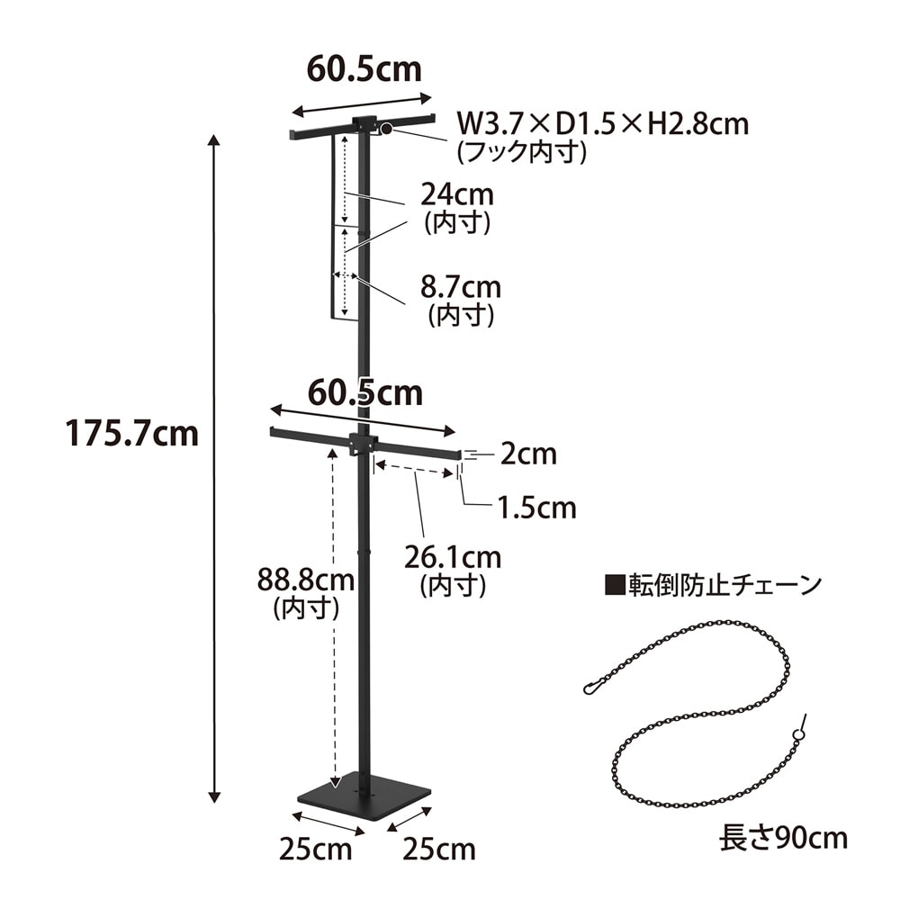 ●使用時:幅約60.5、奥行約60.5、高さ約175.7cm、収納時:幅約25、奥行約25、高さ約175.7cm