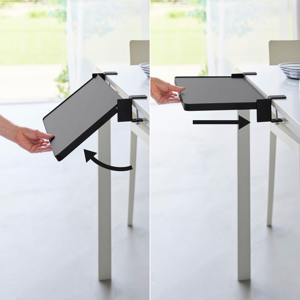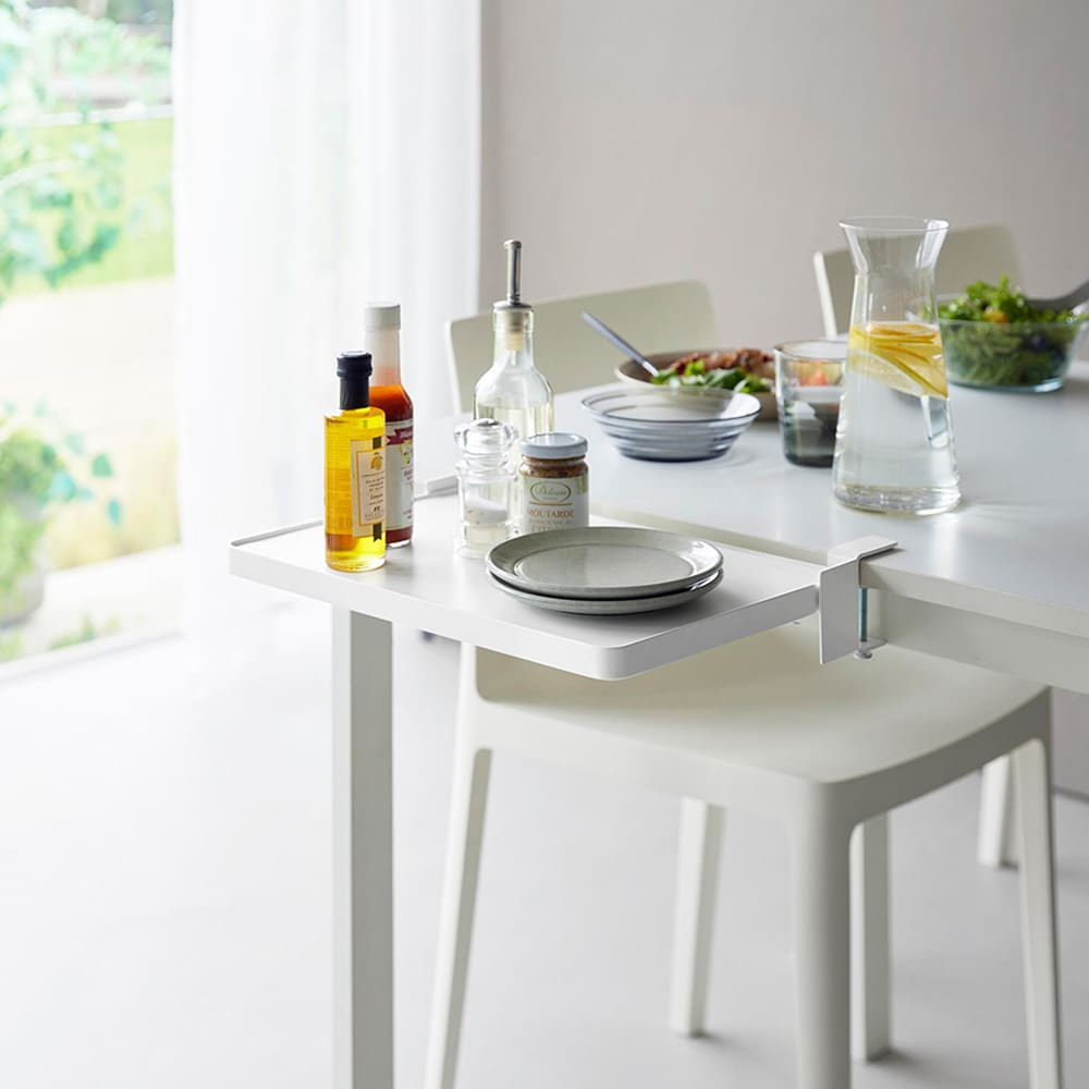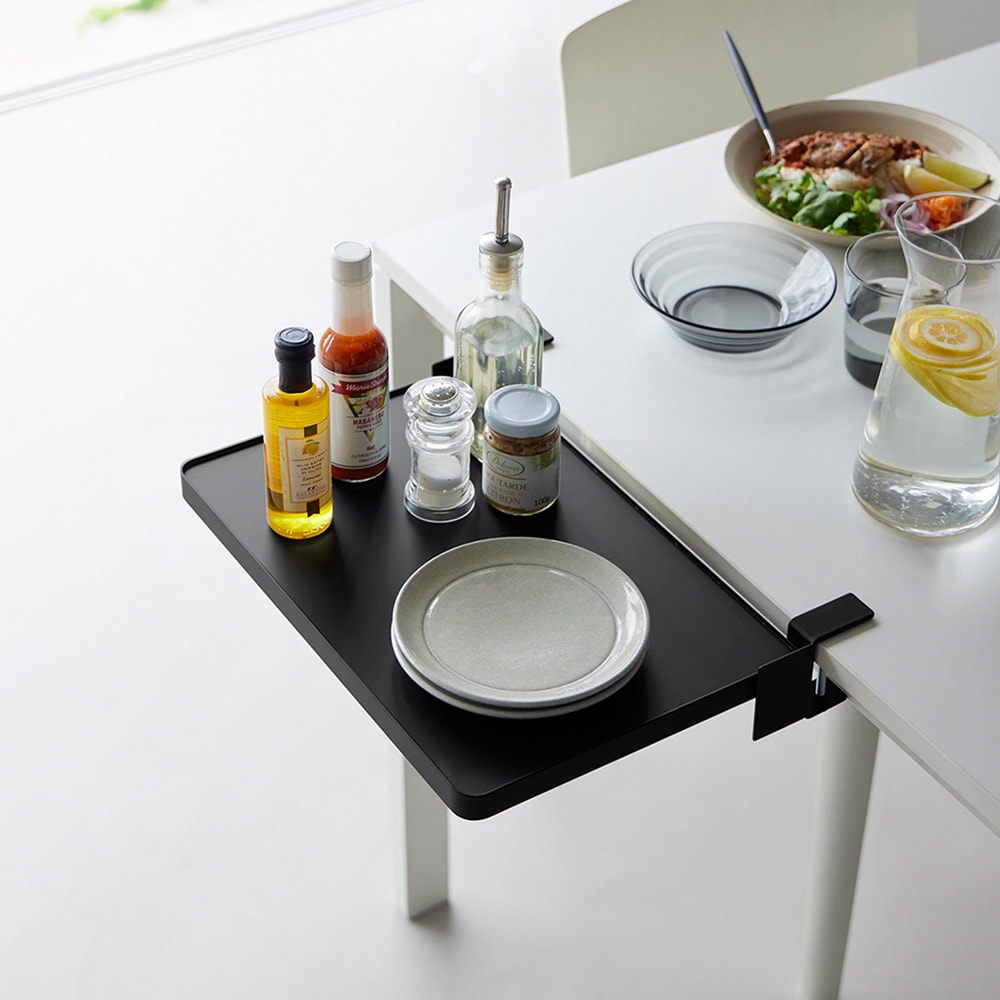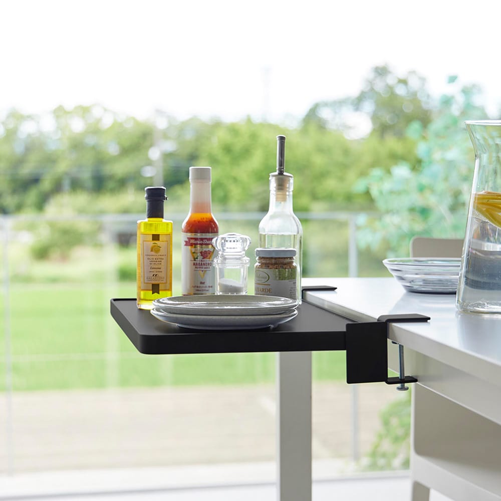 配膳準備や調味料の仮置きに便利クランプでしっかり取り付けられます