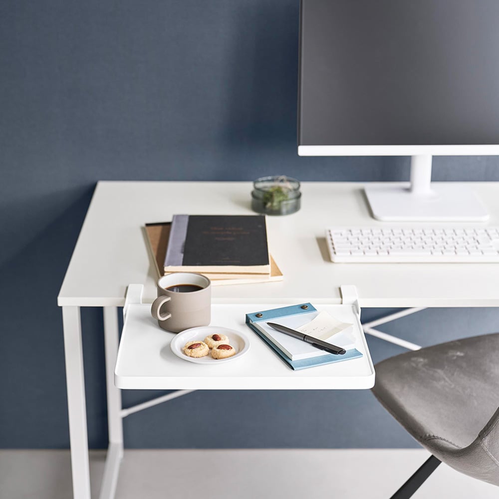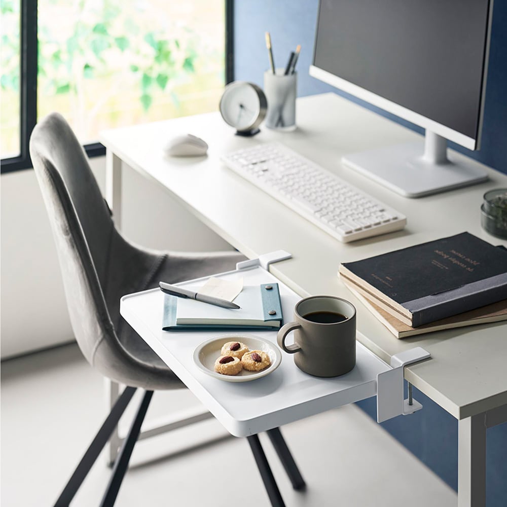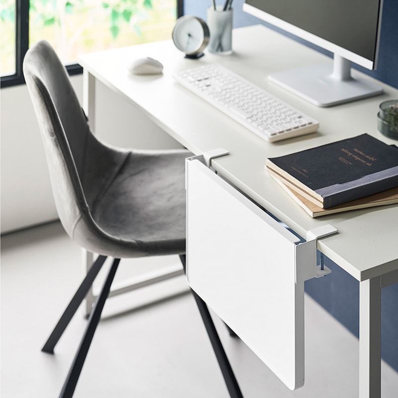 ●デスク横に取り付ければ、作業スペースを広々と確保しながら、必要なときだけ棚を出して使うことができます
